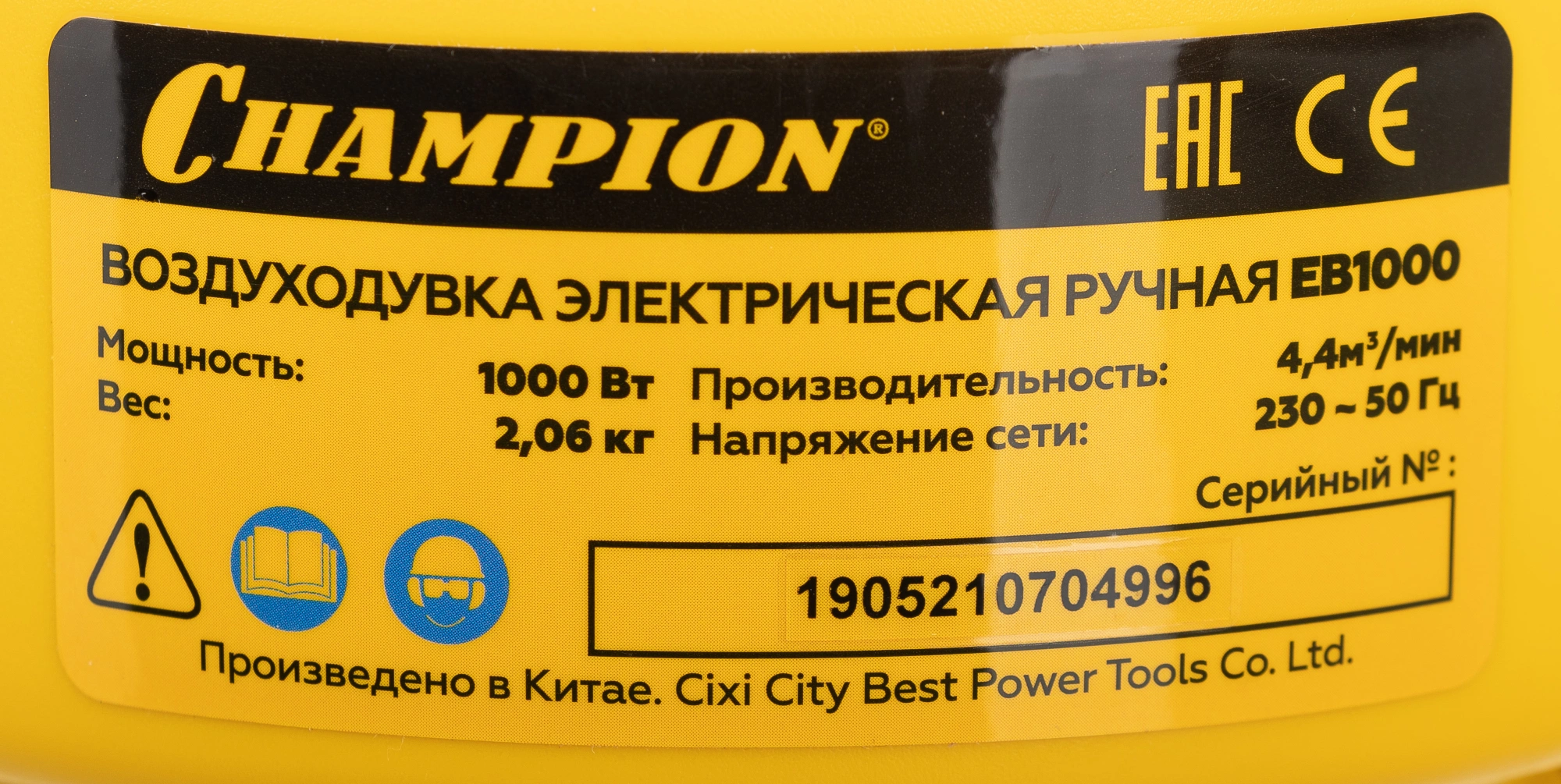 Воздуходувка Champion EB1000 1000Вт пит.:от сети желтый/черный