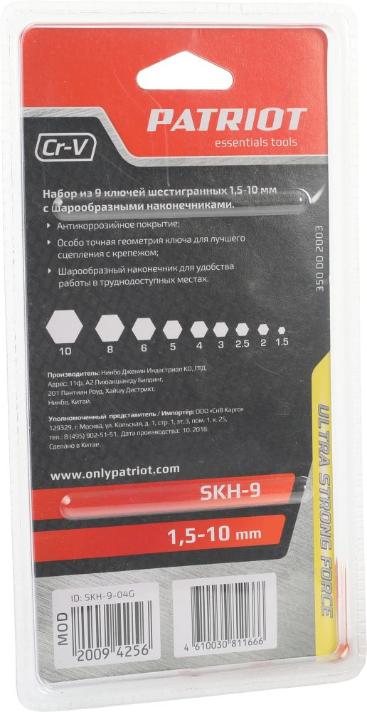 Набор ключей Patriot SKH-9 (350002003)