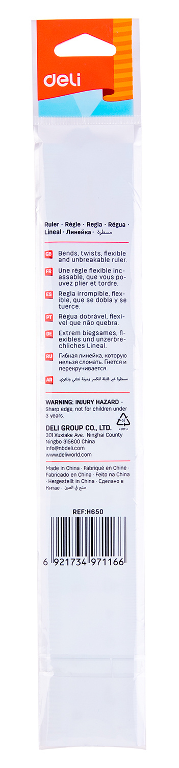 Линейка Deli EH650 пластик дл.20см ассорти гибкая/двухсторонняя шкала