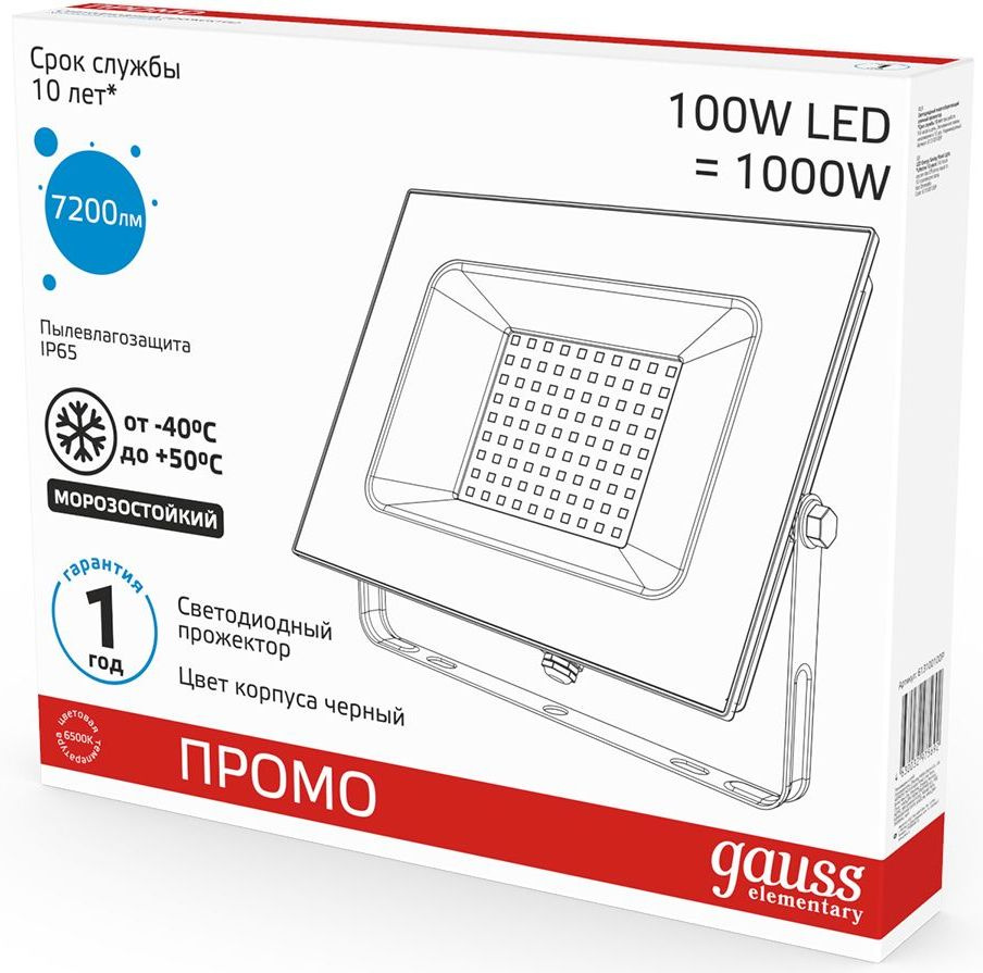 Прожектор уличный Gauss Elementary светодиодный 100Втчерный (613100100P)