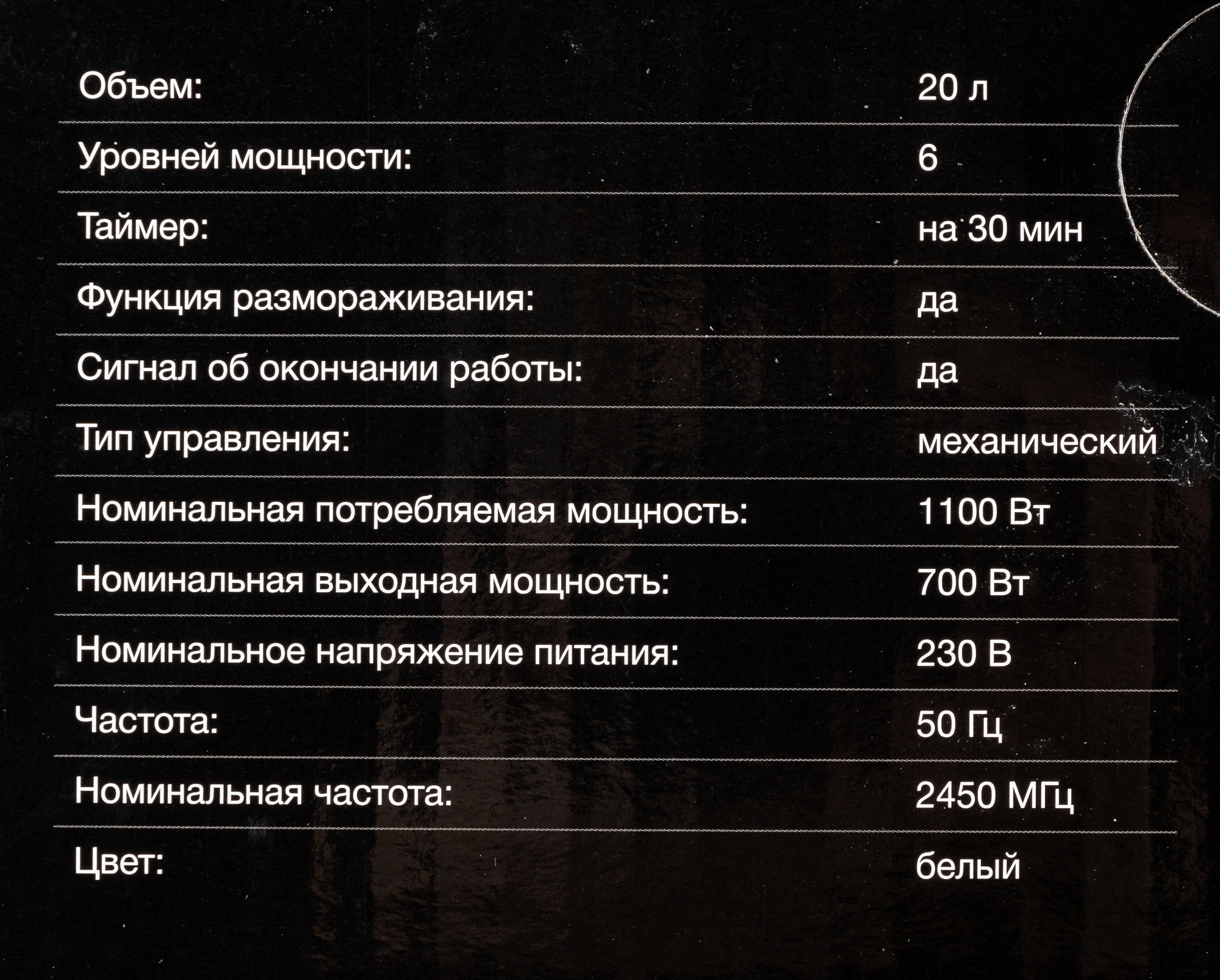 Микроволновая Печь Hyundai HYM-M2041 20л. 700Вт белый