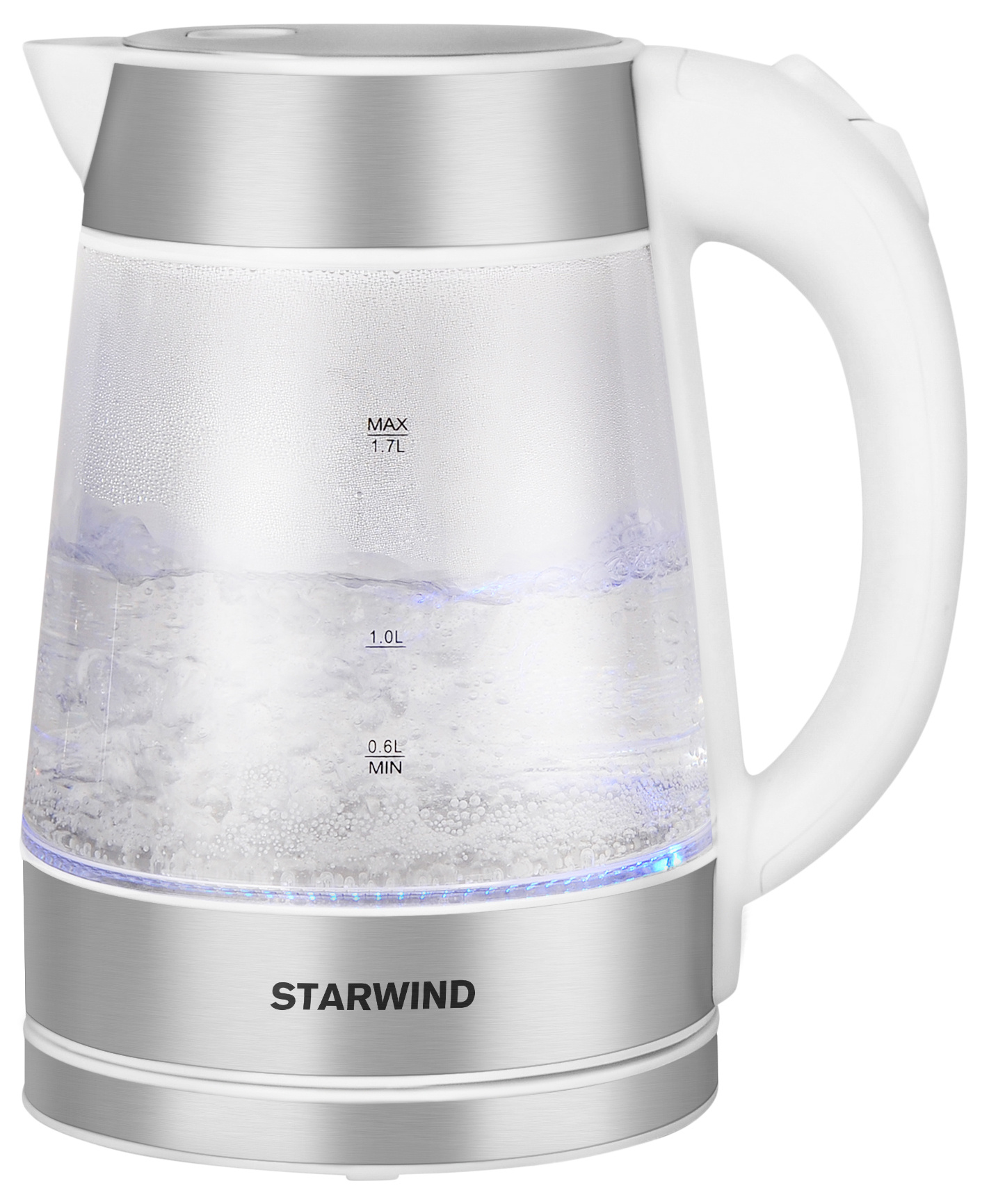 Чайник электрический Starwind SKG2011 1.7л. 2200Вт белый/серебристый корпус: стекло/металл/пластик