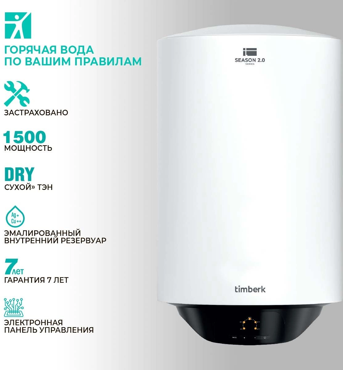 Водонагреватель Timberk Season SWH RE19 100 V 1.5кВт 100л электрический настенный/белый