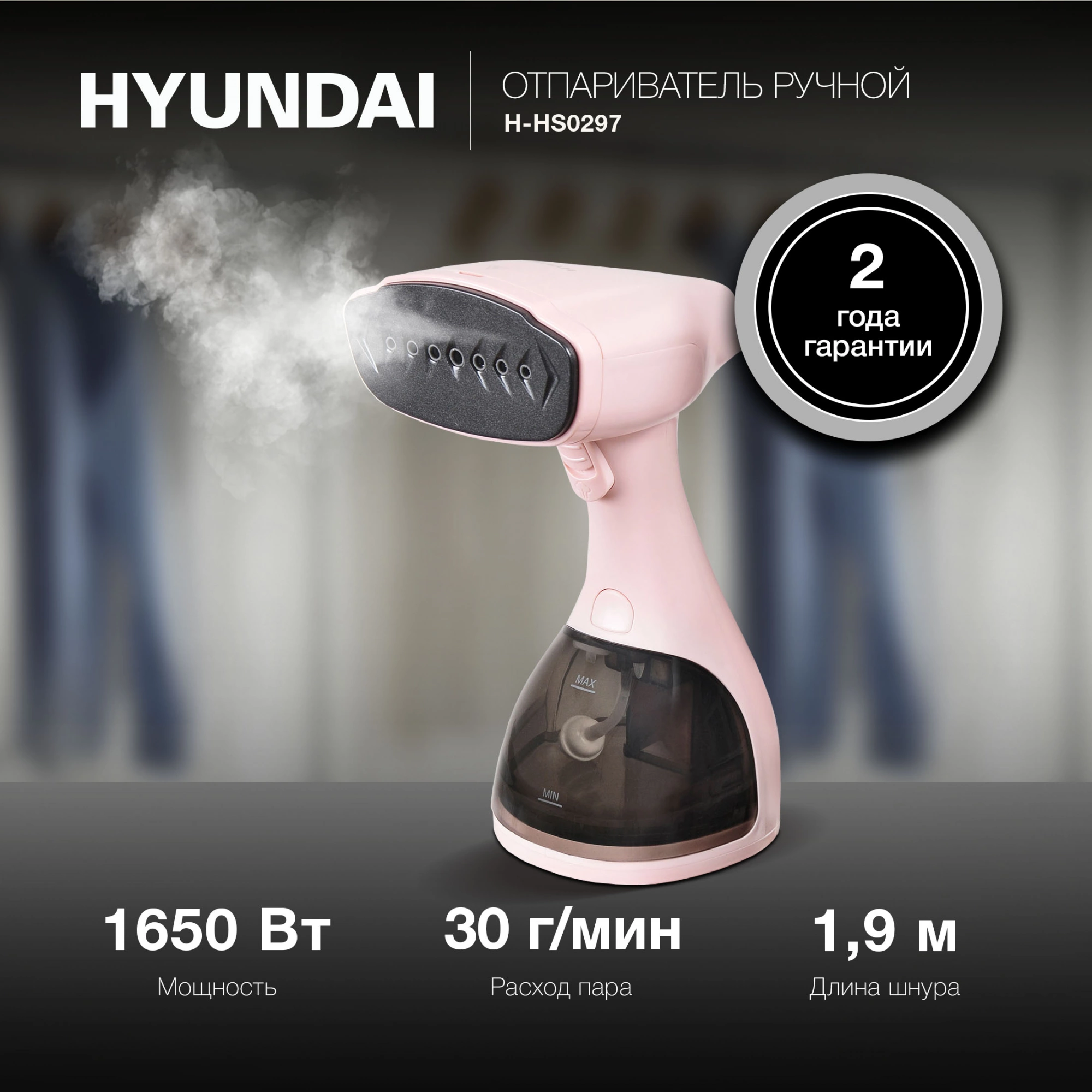 Отпариватель ручной Hyundai H-HS02973 1650Вт розовый