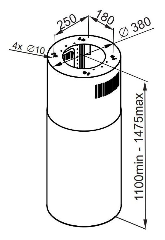 - Высота вытяжки (мин/макс)110x147.5см