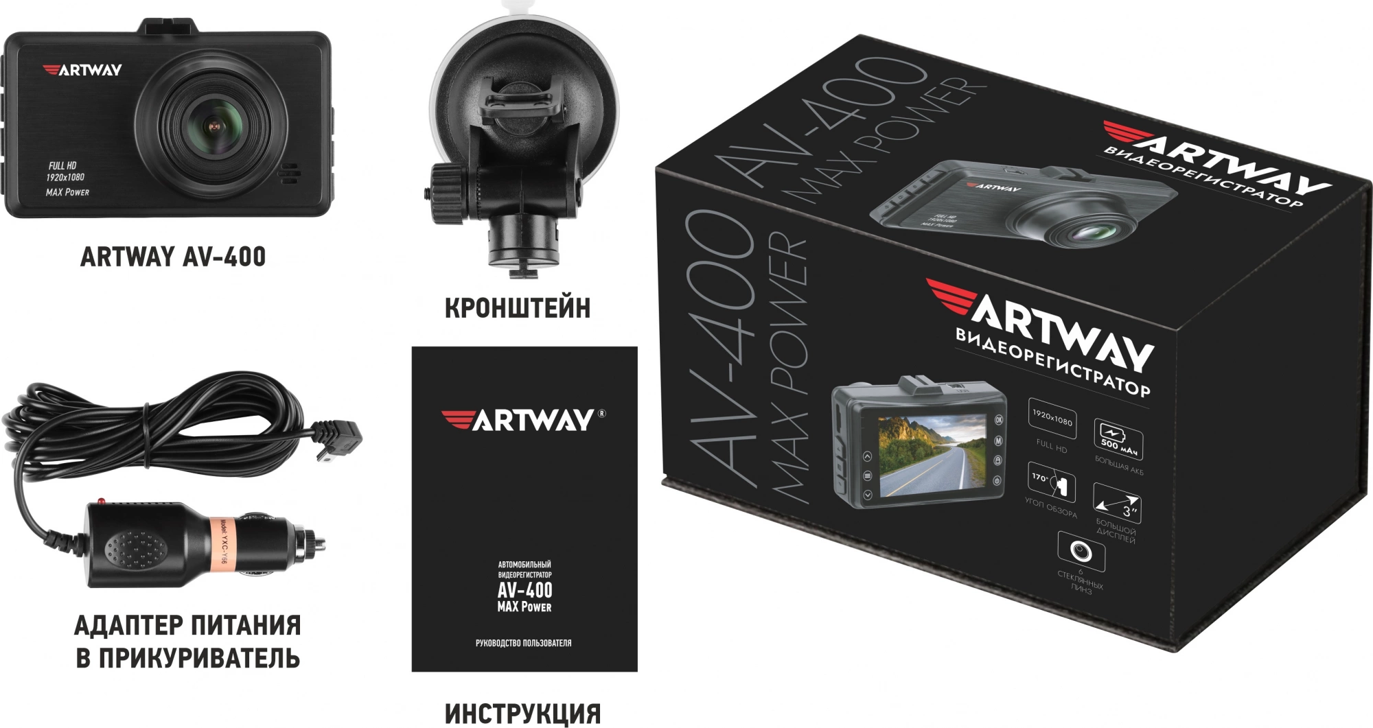 Видеорегистратор Artway AV-400 Max Power черный 2Mpix 1080x1920 1080i 170гр.