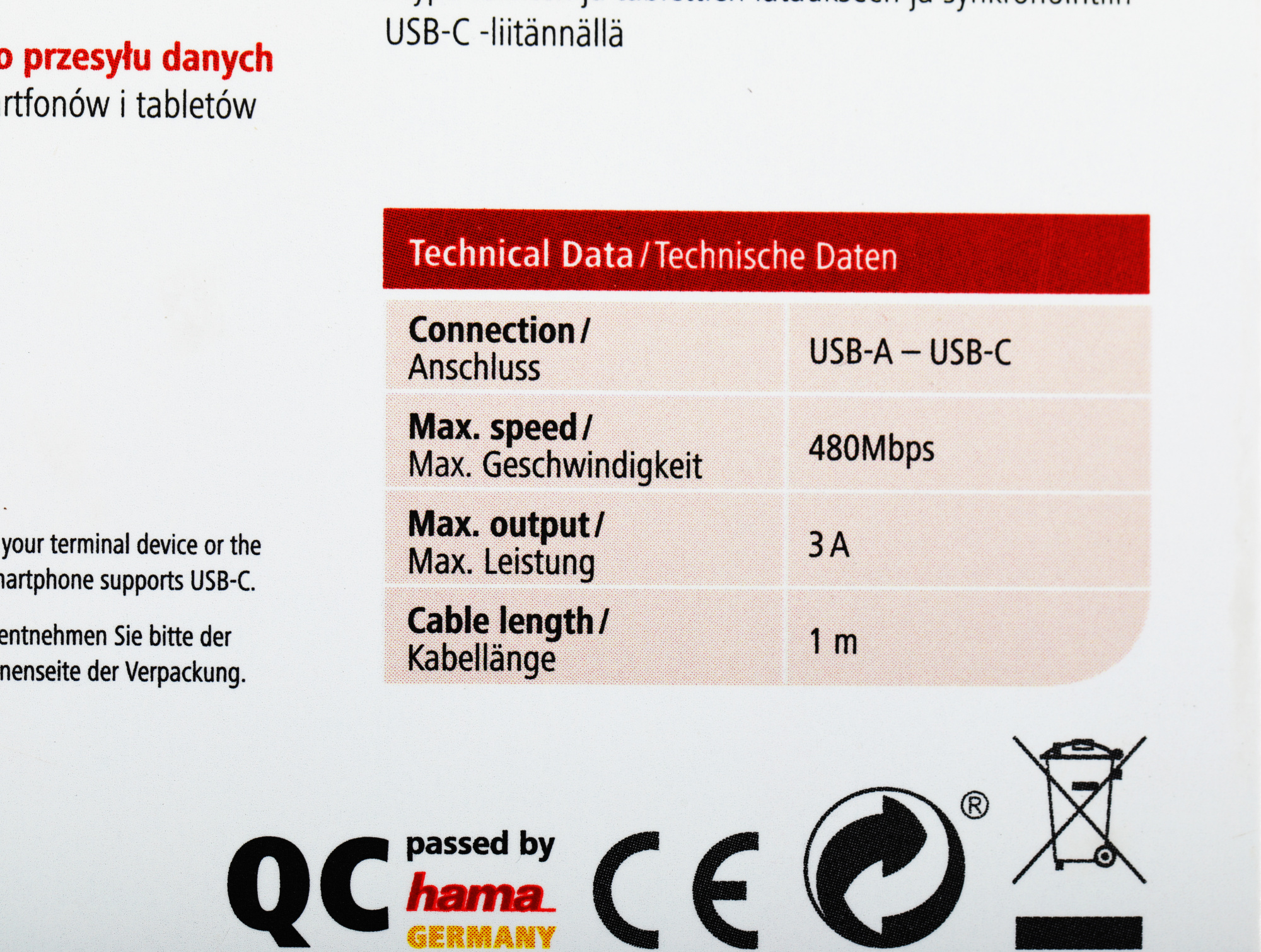Кабель HAMA для передачи данных между персональными компьютерами и смартфонами, планшетами, MP3-плеерами и прочими устройствами с разъемом USB Type-C.
