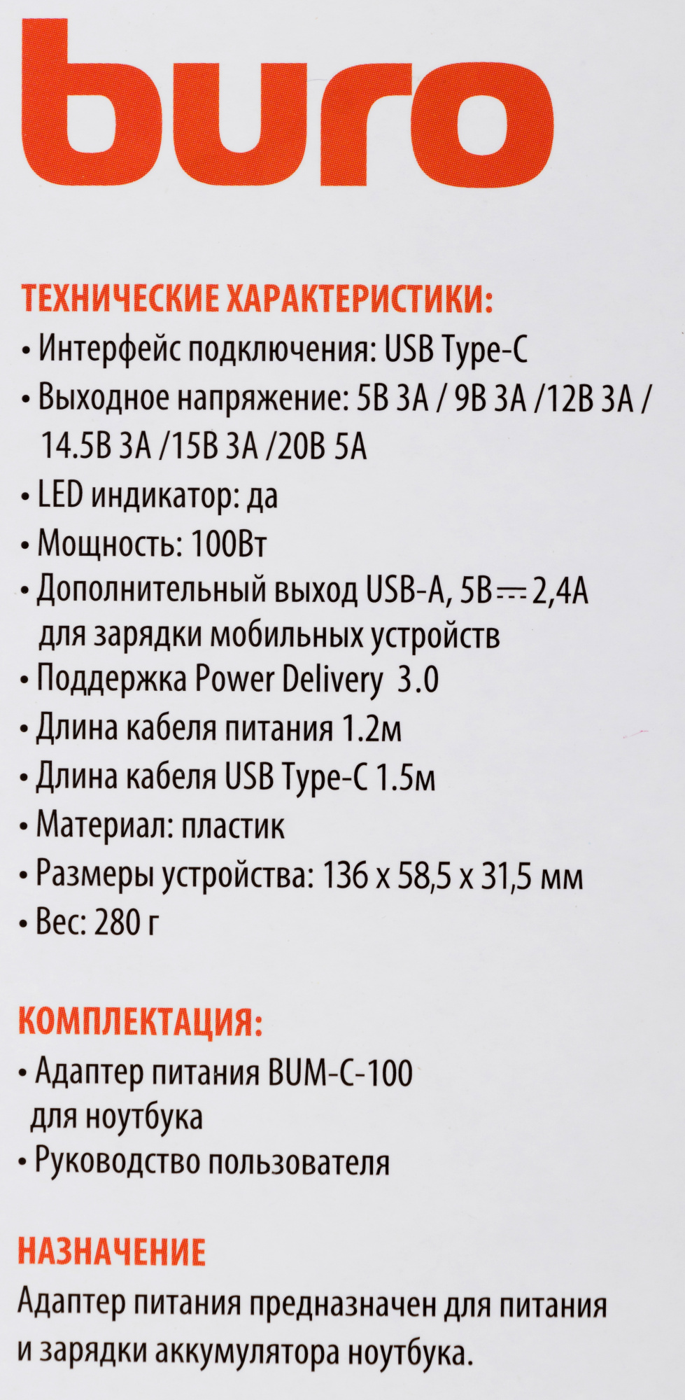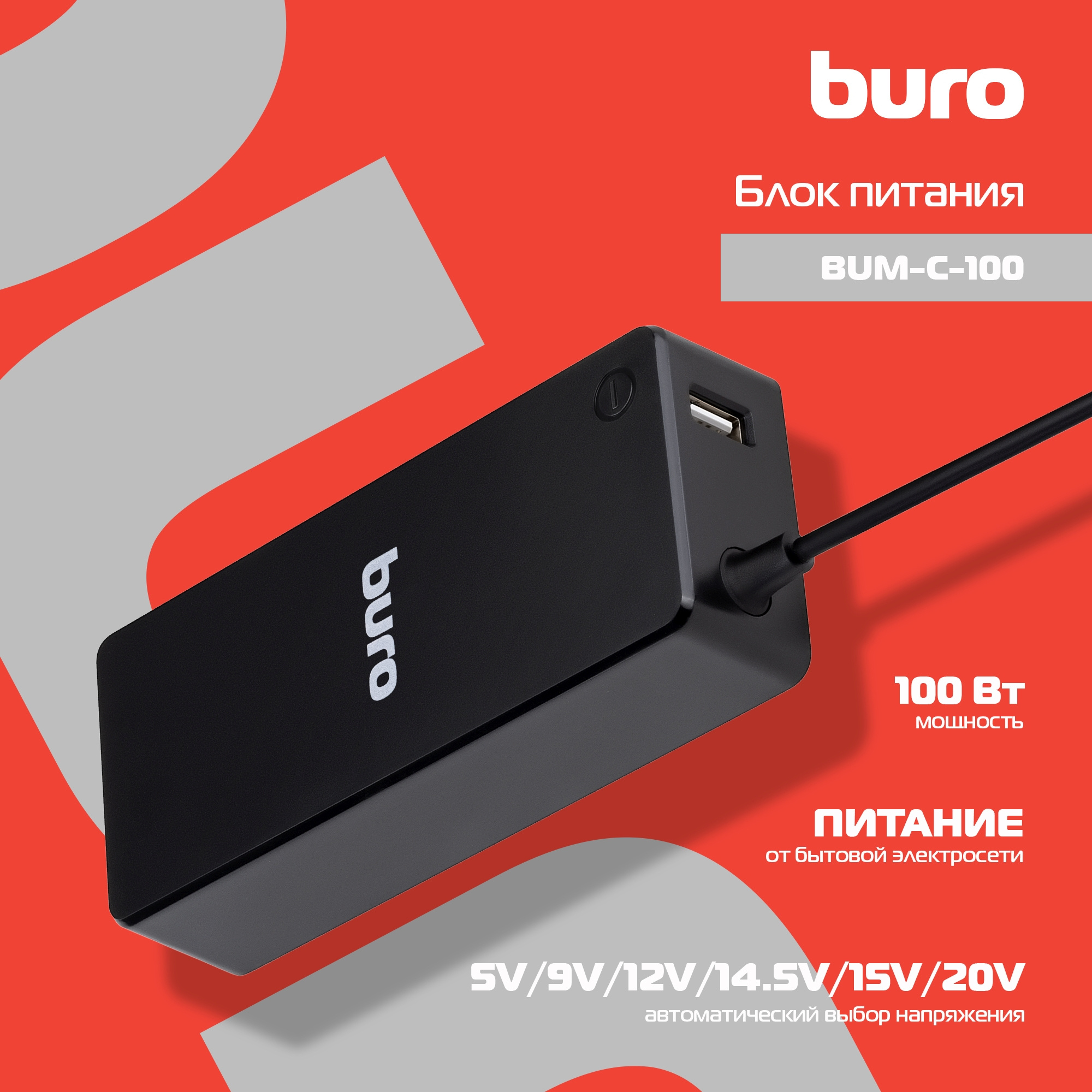 Блок питания Buro BUM-C-100 автоматический 100W 5V-20V 5A 2.4A от бытовой электросети LED индикатор