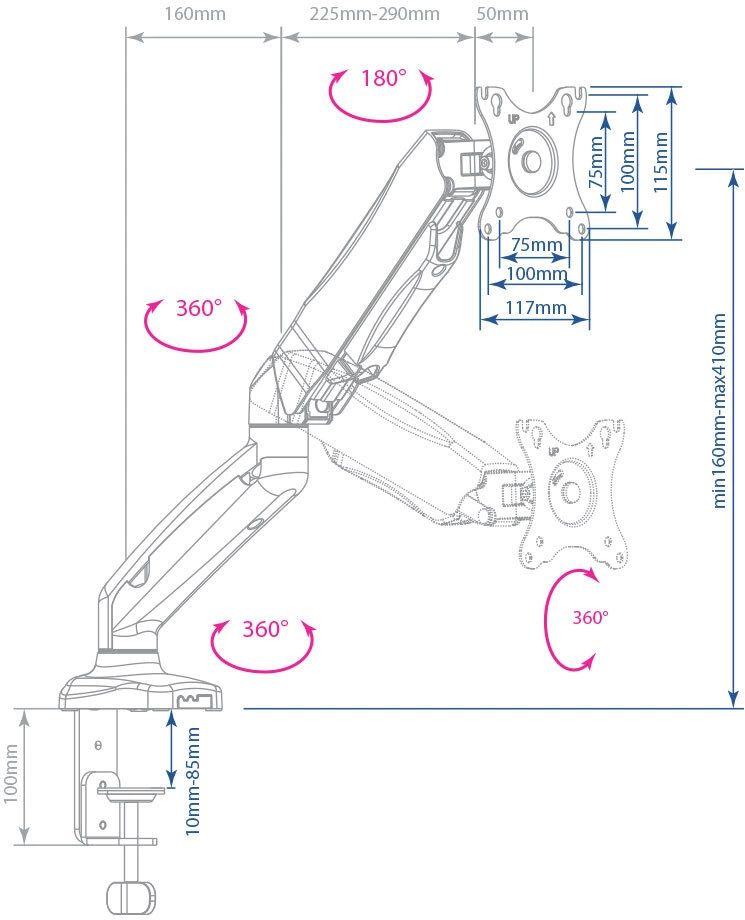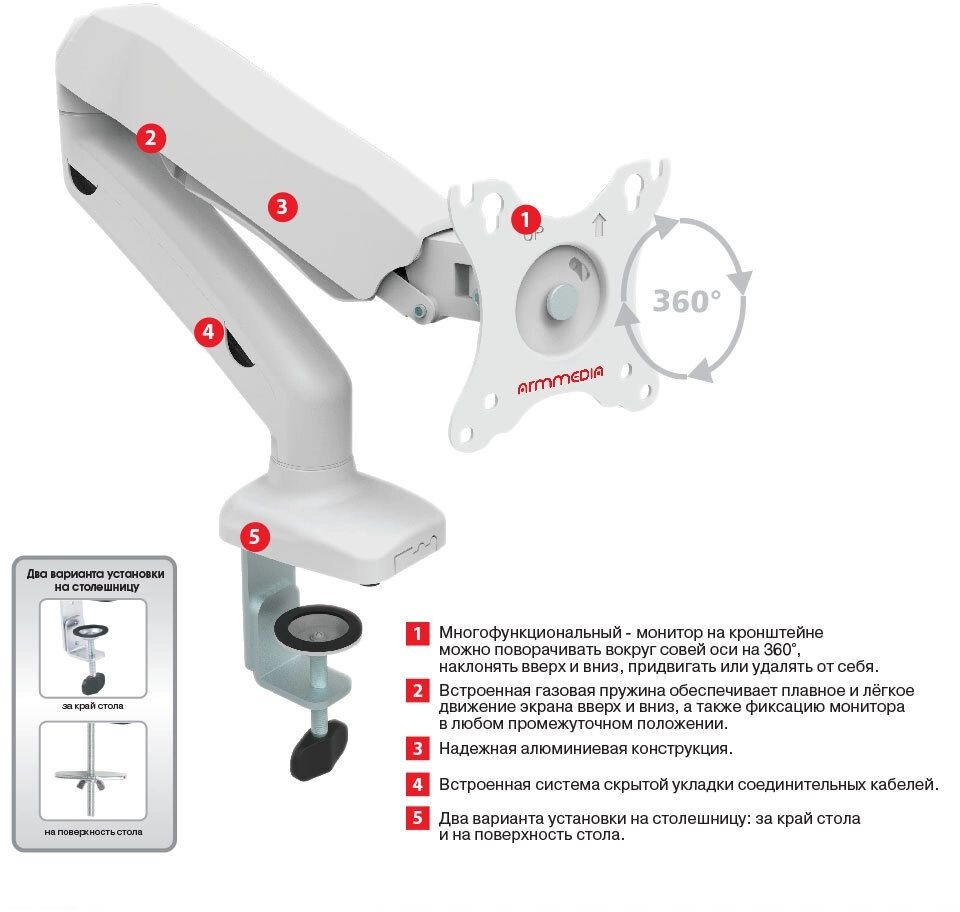 Кронштейн для мониторов Arm Media LCD-T21w белый 15"-32" макс.6.5кг настольный поворот и наклон верт.перемещ.