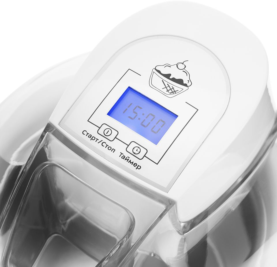 - ОсобенностиНа панели управления вы можете выбрать время приготовления с помощью таймера на 45 минут. Конструкция мороженицы полностью разборная. Её легко мыть и собирать.