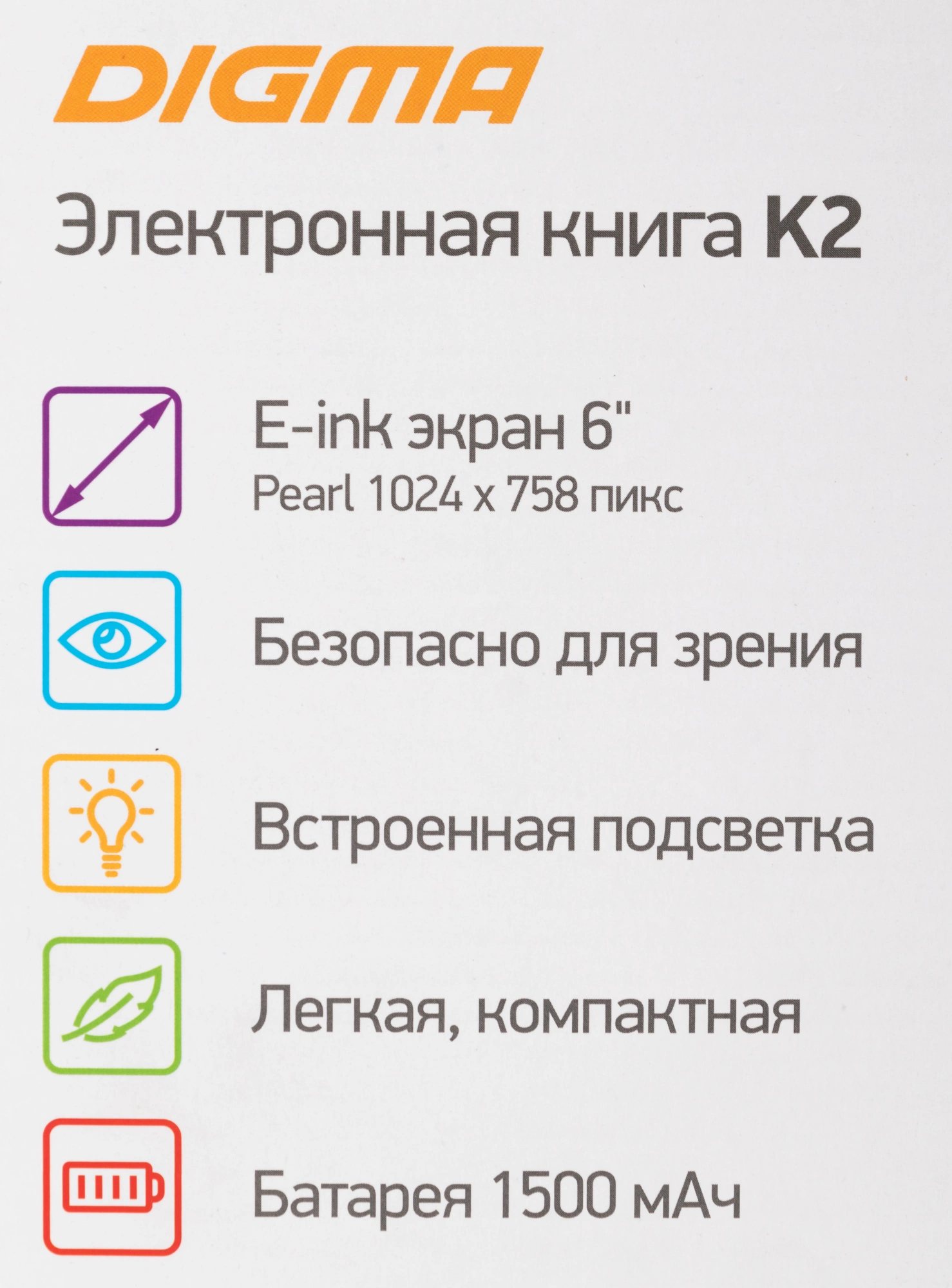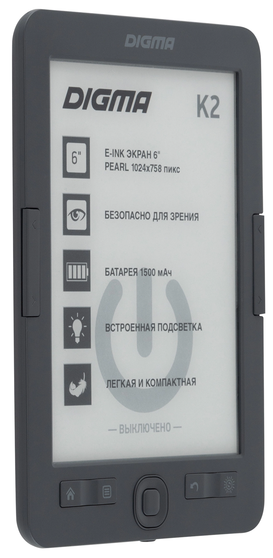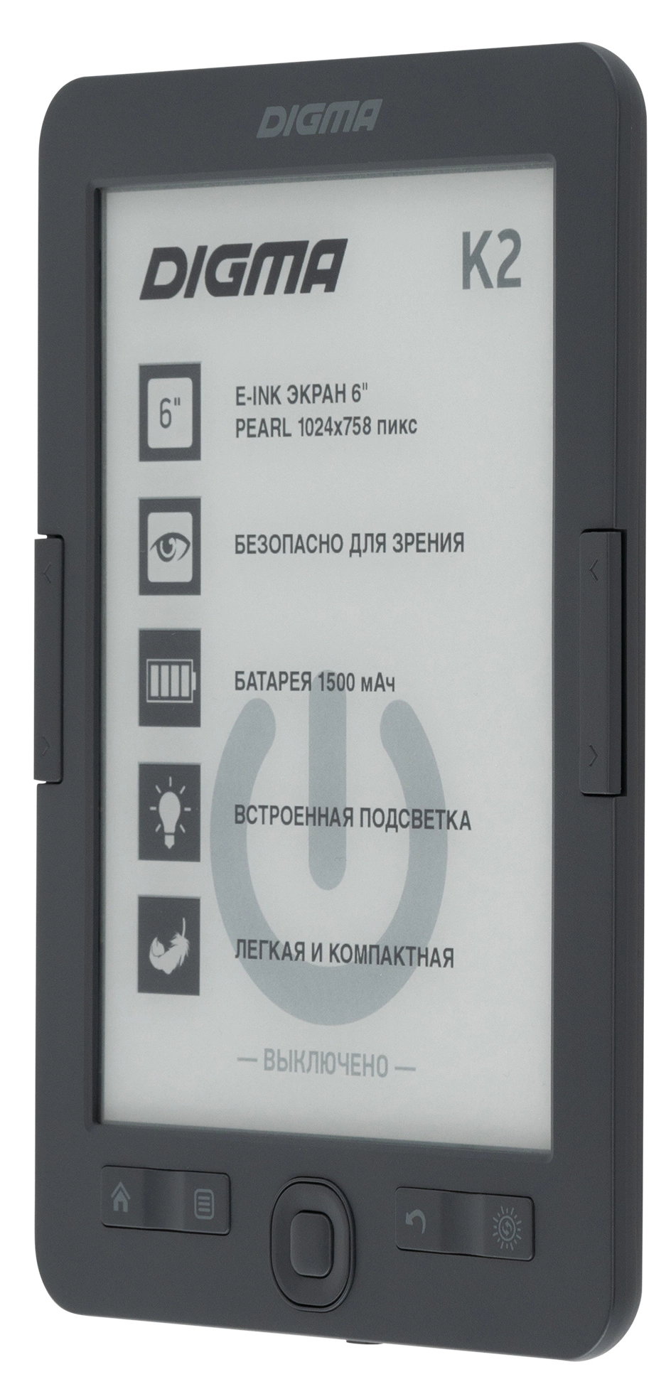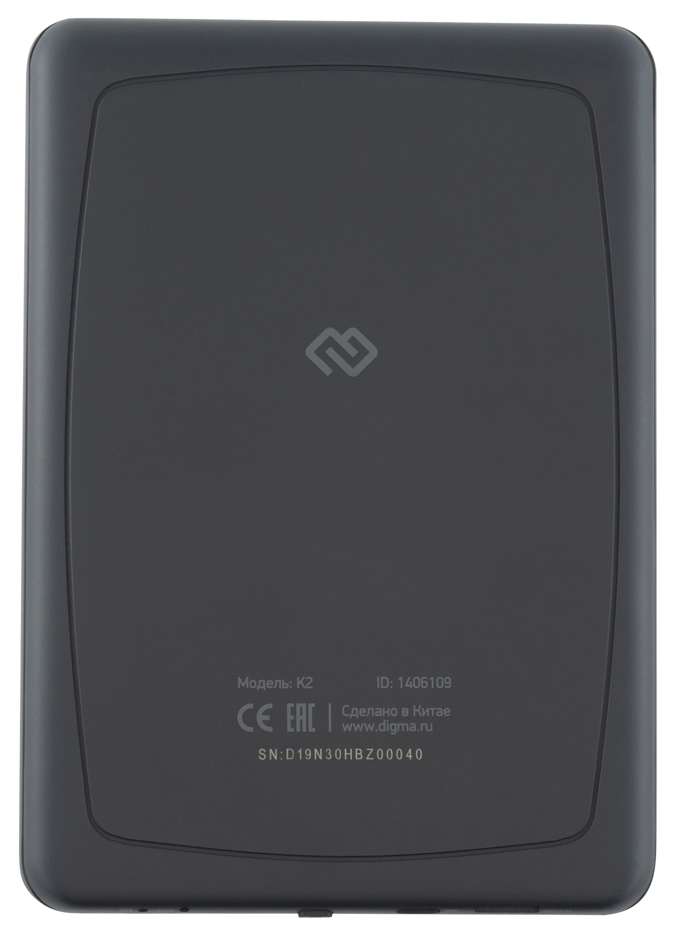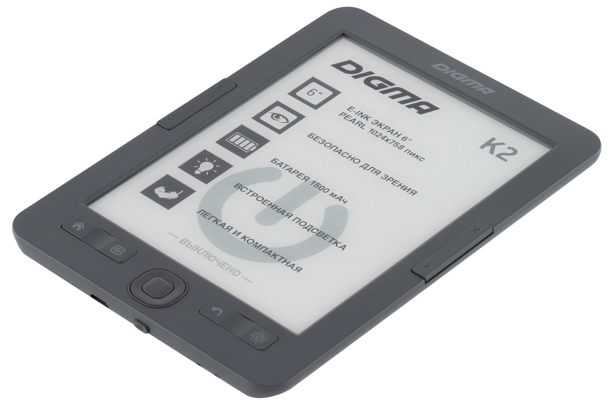 Электронная книга Digma K2 6" E-ink HD Pearl 758x1024 600MHz/4Gb/microSDHC/подсветка дисплея темно-серый
