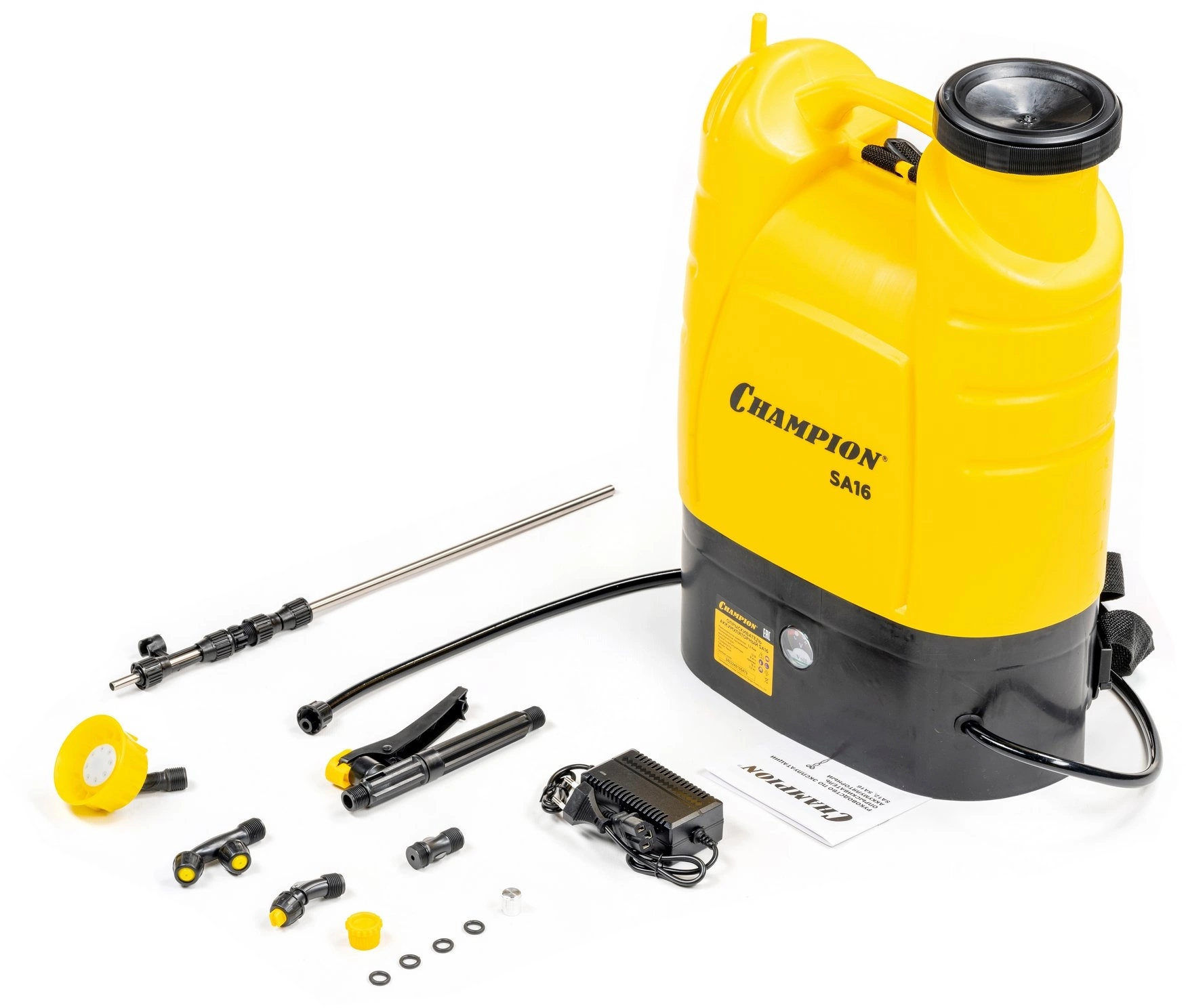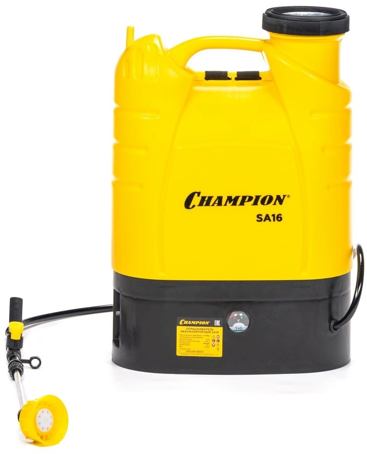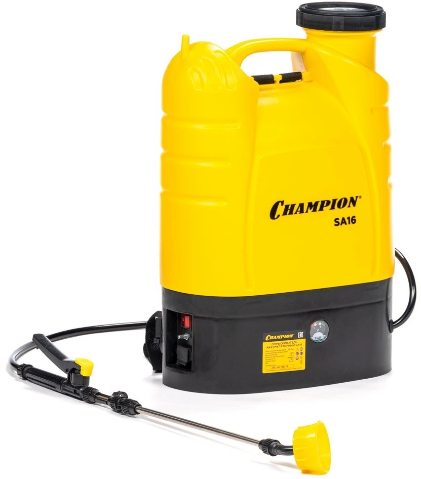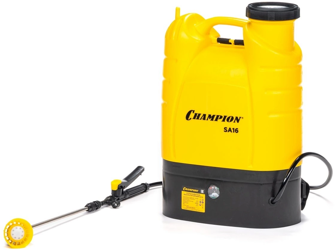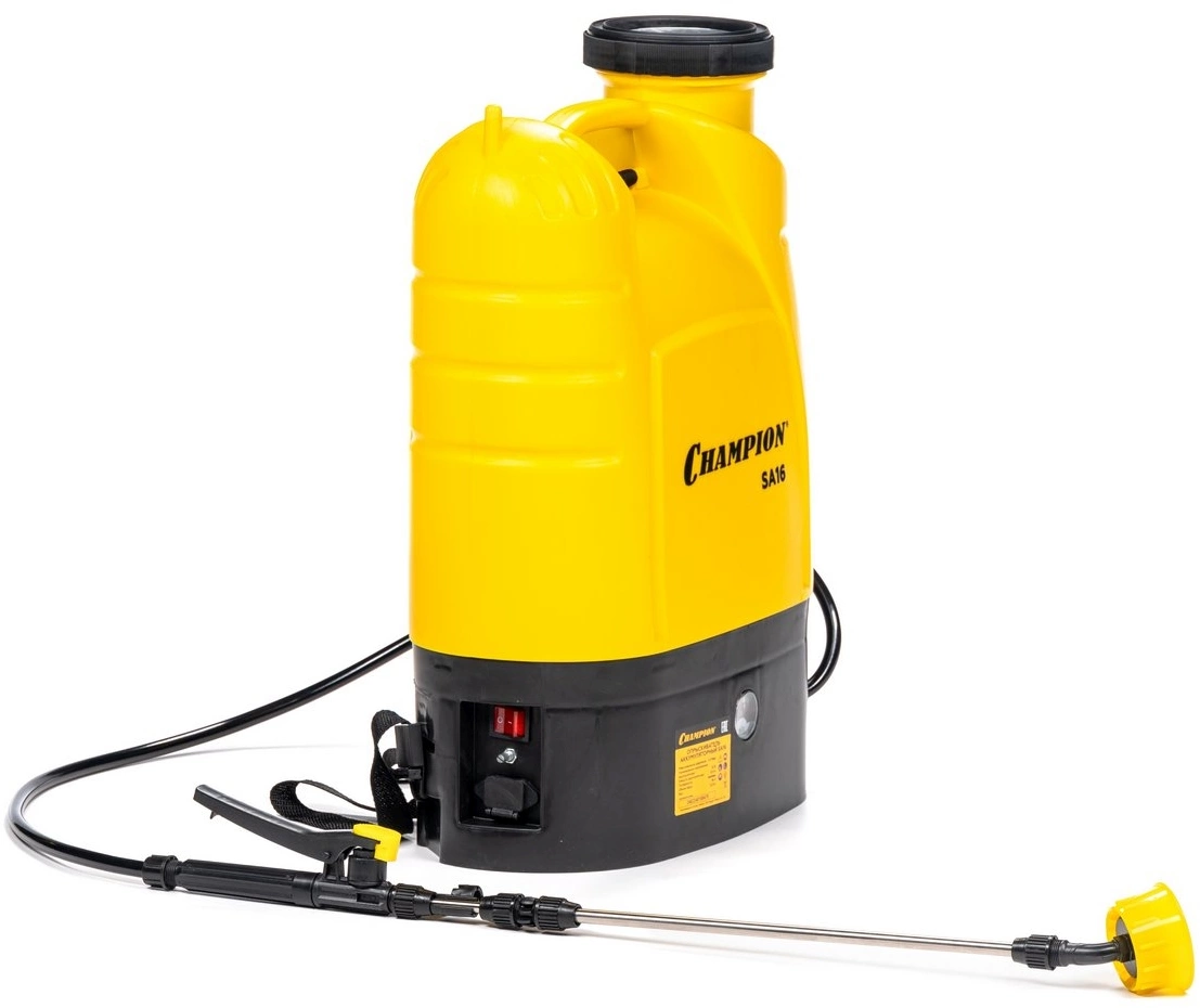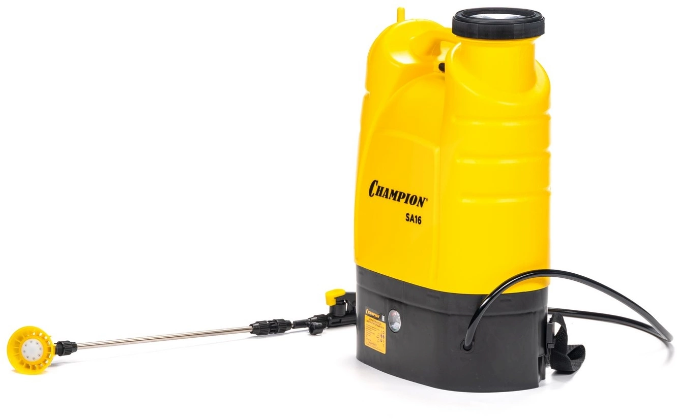 - ОсобенностиНебольшой вес Champion SA16. Телескопическая трубка. Ремни для ношения на плече. Высокая производительность насоса.