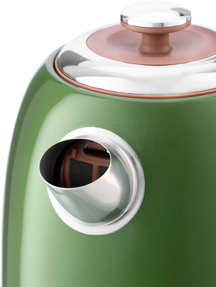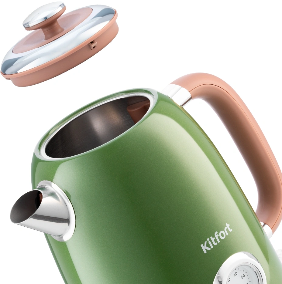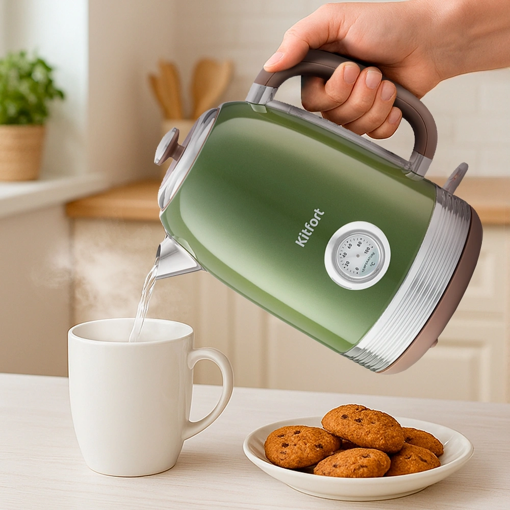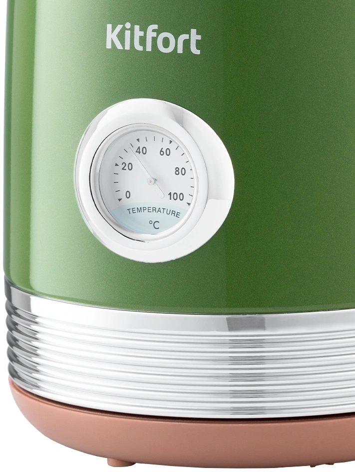 Чайник Kitfort КТ-6110 имеет встроенный термометр, выполненный в винтажном стиле. Это очень удобно для заваривания различных напитков, для которых требуется определённая температура воды. Например, зелёный чай, белый чай, кофе и тд.