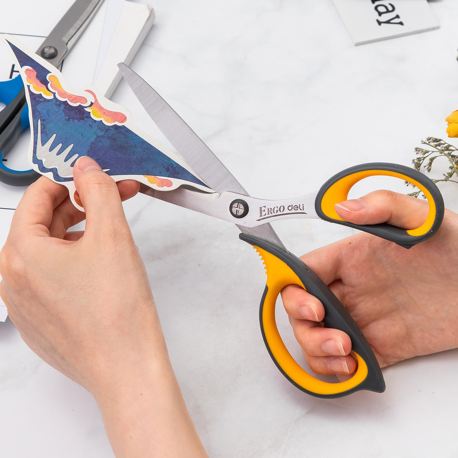 Ножницы Deli E77760 Soft офисные 210мм ТПЭ сталь ассорти блистер
