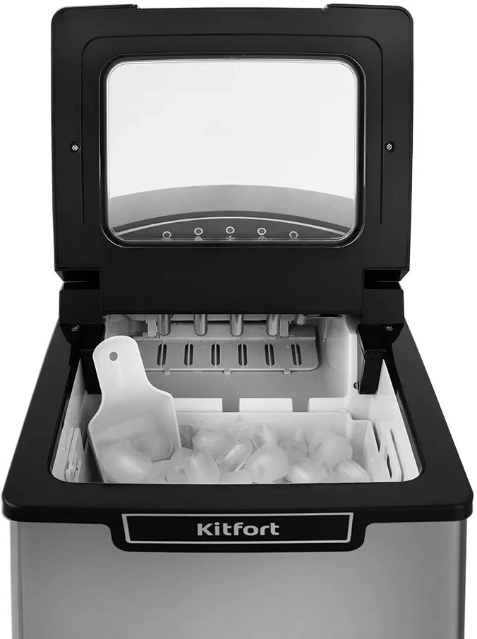 Ледогенератор Kitfort KT-1807 – прибор, который быстро генерирует лёд за 6 -13 мин. Его можно использовать дома для приготовления охлаждённых напитков или для охлаждения жидкостей.