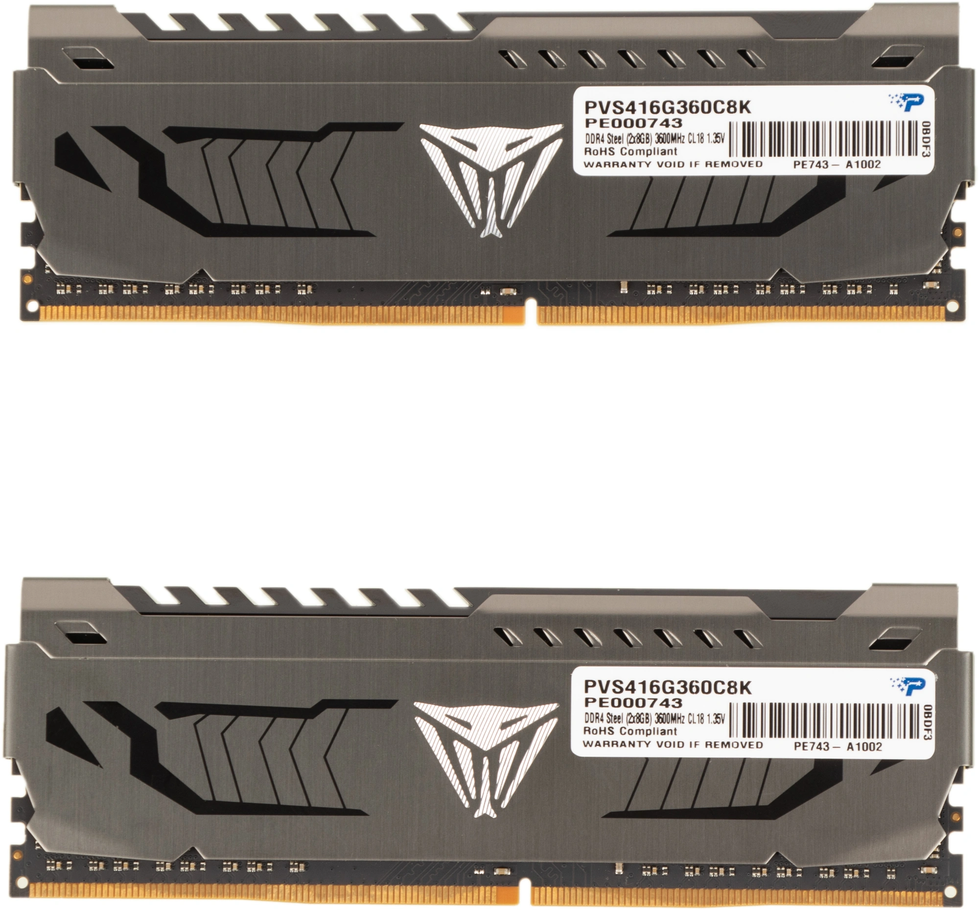 Память DDR4 2x8GB 3600MHz Patriot PVS416G360C8K Viper Steel RTL Gaming PC4-28800 CL18 DIMM 288-pin 1.35В single rank с радиатором Ret