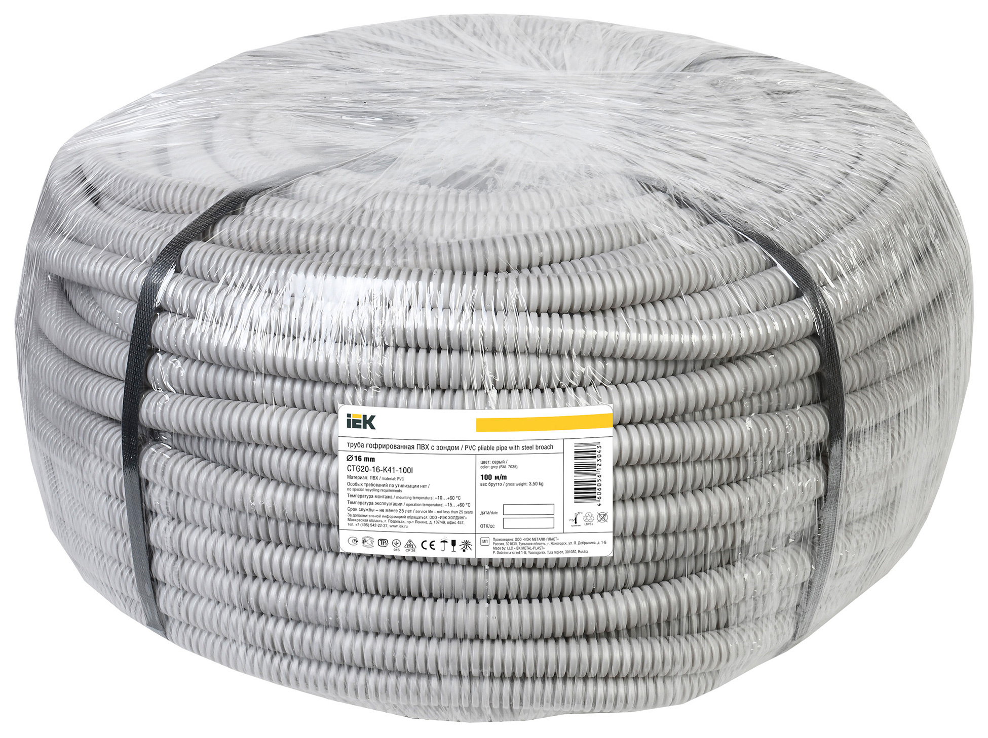 Труба гофр. гибкая ПВХ IEK CTG20-16-K41-100I внеш.D=16мм с протяжкой 100м сер.