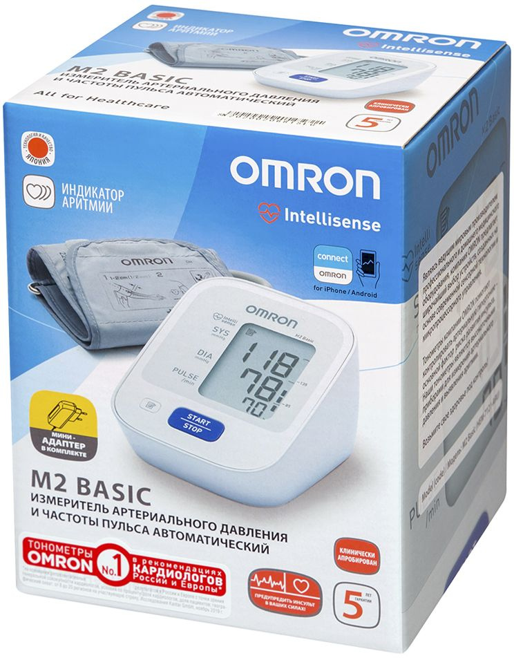 Тонометр автоматический Omron M2 Basic (HEM-7121-ARU) с адаптером