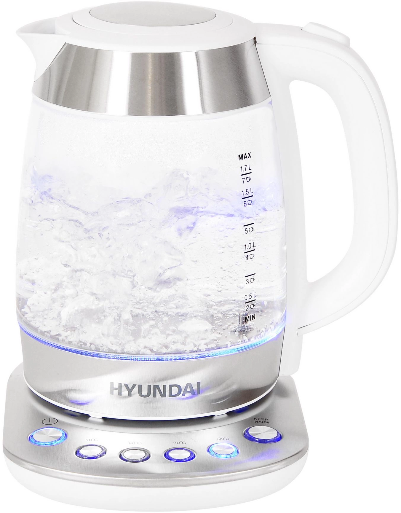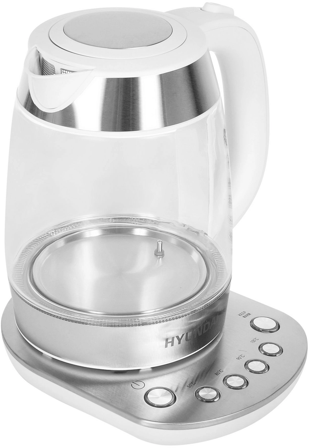 Чайник электрический Hyundai HYK-G4033 1.7л. 2200Вт белый/серебристый корпус: стекло