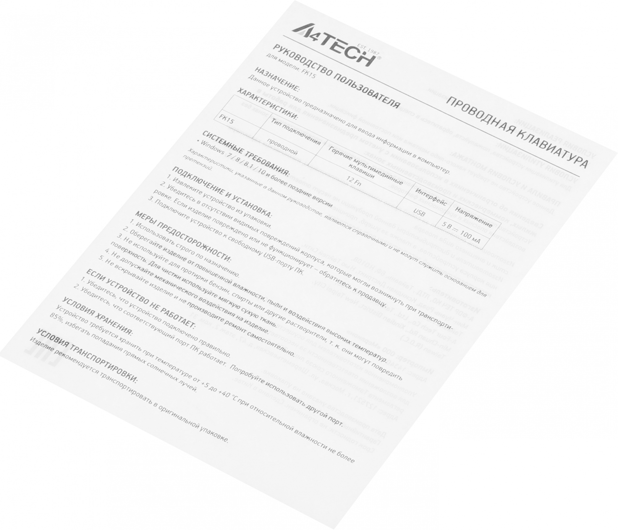 Клавиатура A4Tech Fstyler FK15 белый USB (FK15 WHITE)