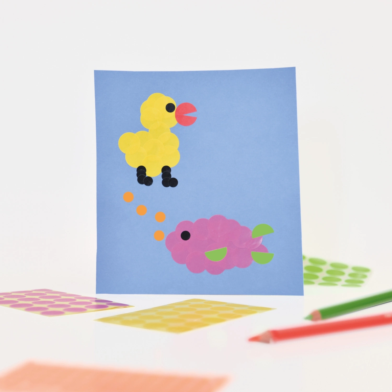 - ОсобенностиЦветные этикетки-точки в ассортименте