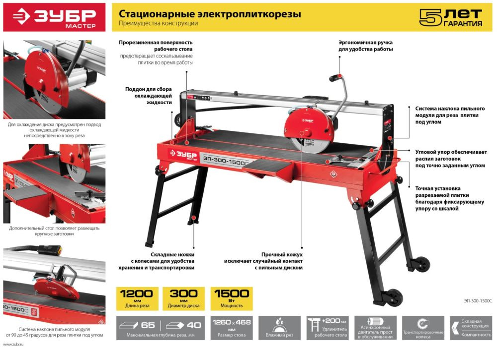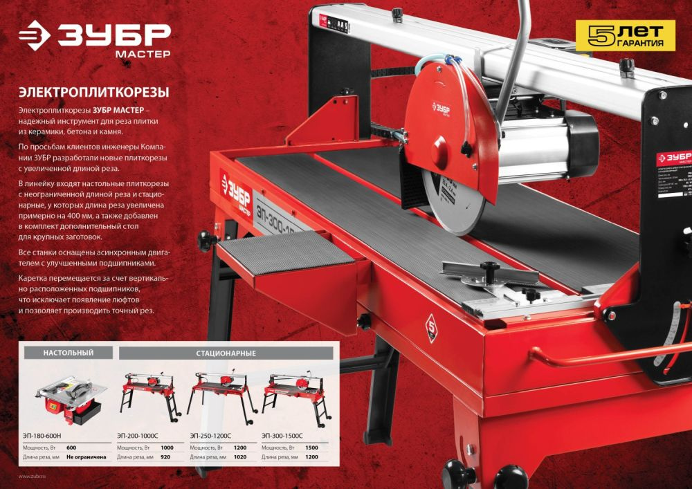 Плиткорез электрический Зубр ЭП-300-1500C 1500Вт красный/черный