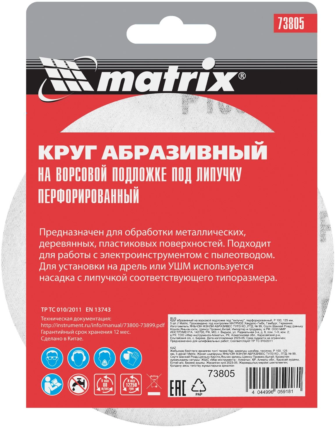 Диск абразивный Matrix 73805 d=125мм (угловые шлифмашины) (упак.:5шт)
