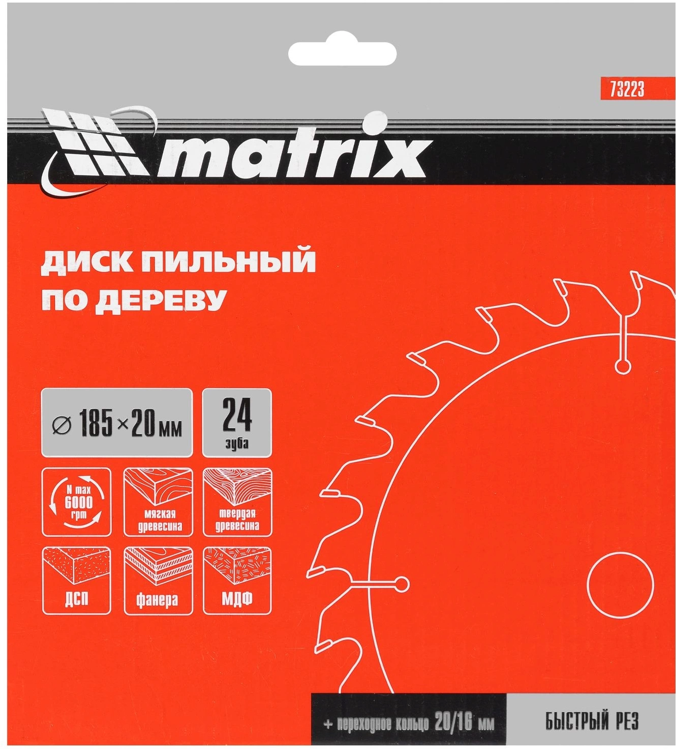 Диск пильный по дер. Matrix 73223 d=185мм d(посад.)=20мм (циркулярные пилы) (упак.:1шт)