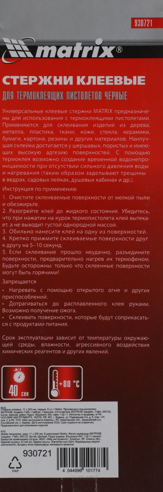 Клеевые стержни для клеевого пистолета Matrix 930721