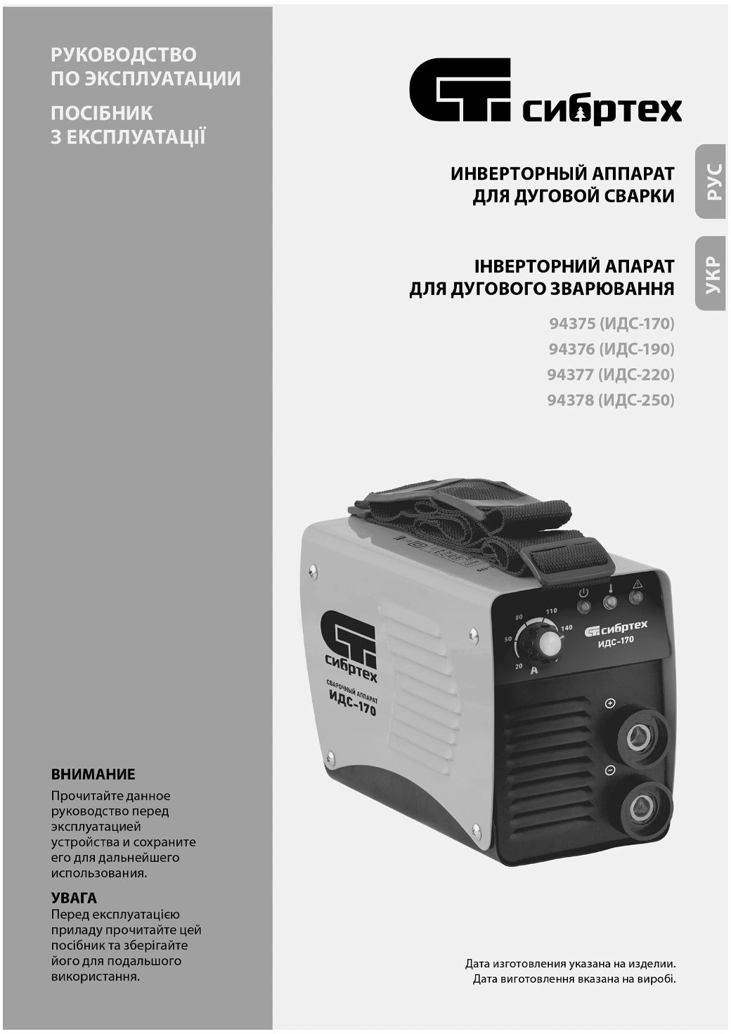 Сварочный аппарат Сибртех ИДС-170 инвертор ММА DC 6.2кВт