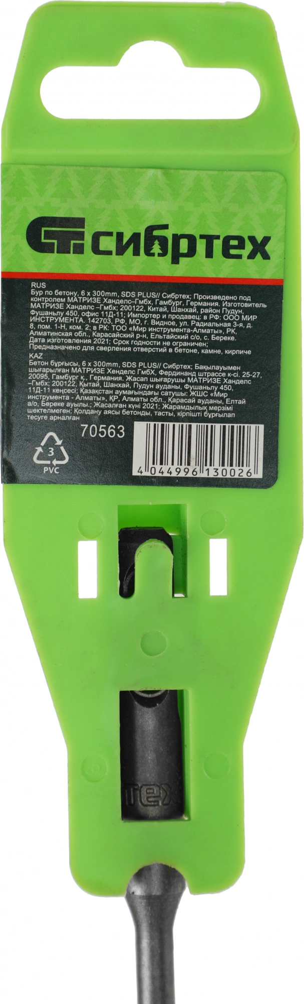 Бур Сибртех 70563 по бетону Д=6мм Дл=300мм (1пред.) для перфораторов