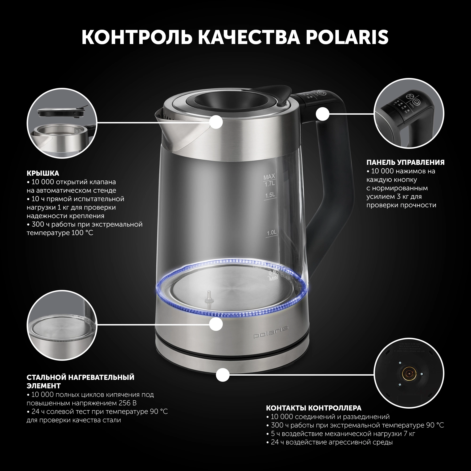 Чайник электрический Polaris PWK 1725CGLD 1.7л. 2200Вт серебристый матовый корпус: стекло/металл