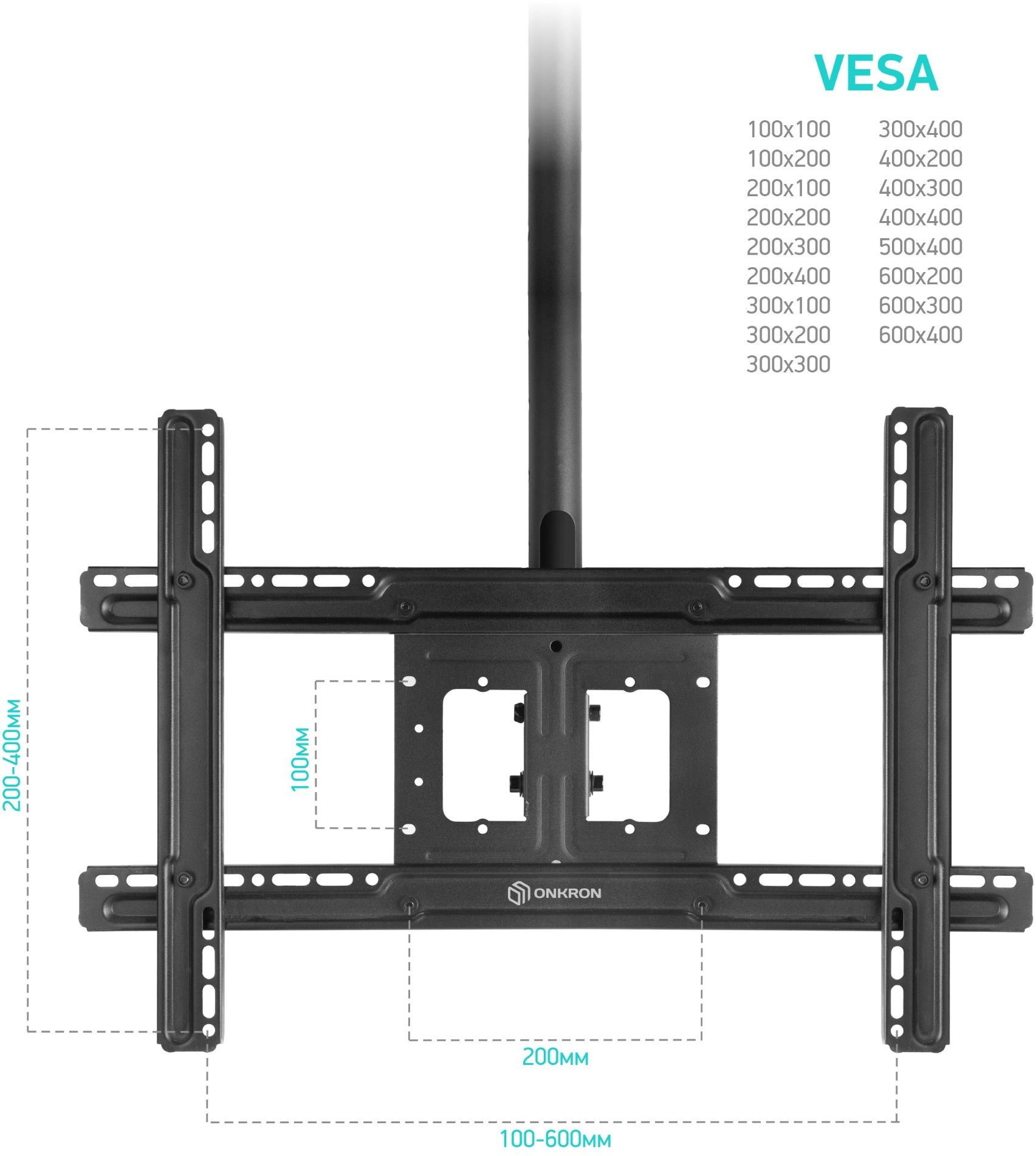 - Поддержка крепления VESA100x100, 200x100, 200x200, 200x300, 300x100, 300x200, 300x300, 300x400, 400x200, 400x300, 400x400, 500x400, 600x400