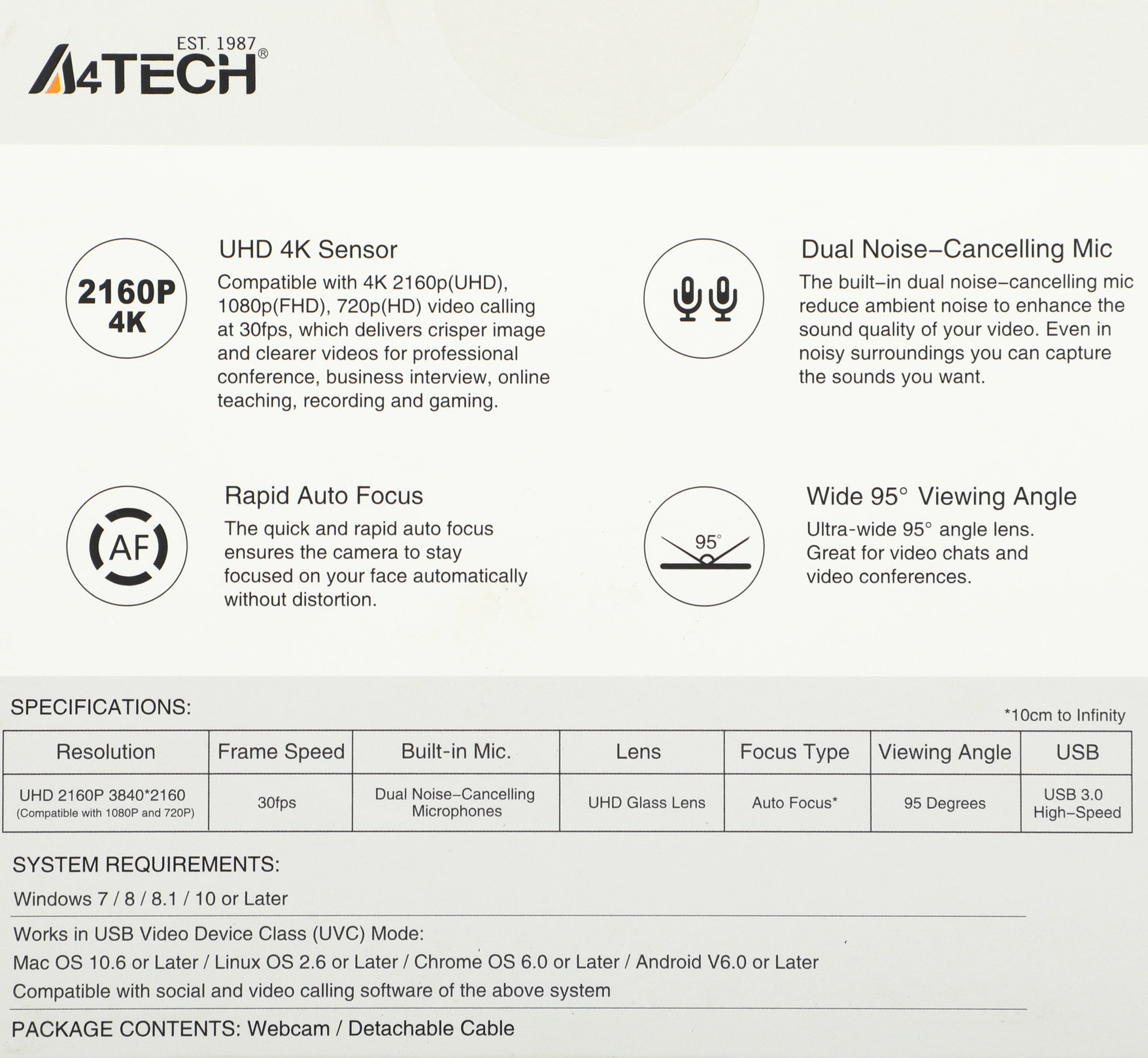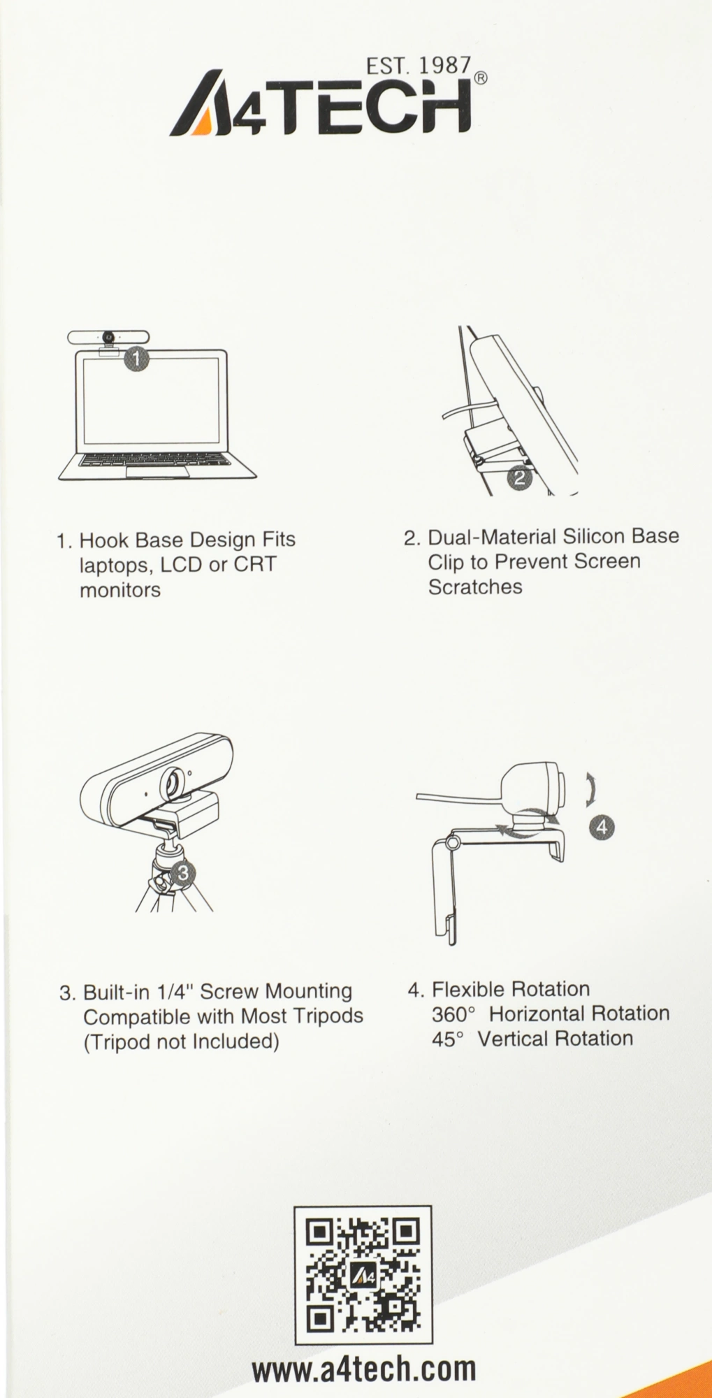 Камера Web A4Tech PK-1000HA черный 8Mpix (3840x2160) USB2.0 с микрофоном