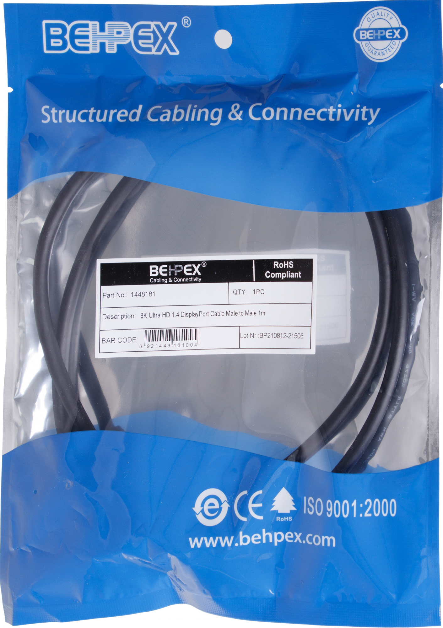 Кабель Ultra HD DisplayPort (m) DisplayPort (m) 1м черный (пакет)