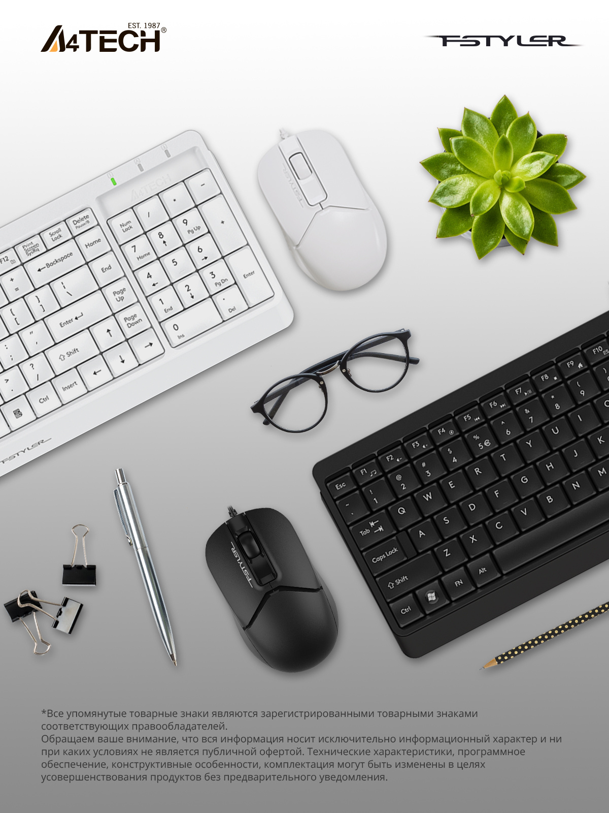 Клавиатура + мышь A4Tech Fstyler F1512 клав:черный мышь:черный USB (F1512 BLACK)