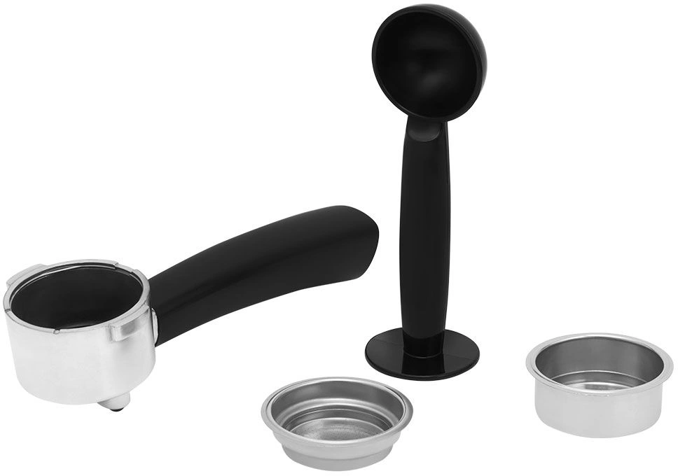 - ОсобенностиВ комплекте к кофеварке идёт ложка-темпер. Темпер используется для утрамбовки молотого кофе и как мерная ложка. Металлический фильтр у рожка идёт с лазерным нанесением отверстий. Он долговечен и не требует использования каких-либо расходующихся частей.