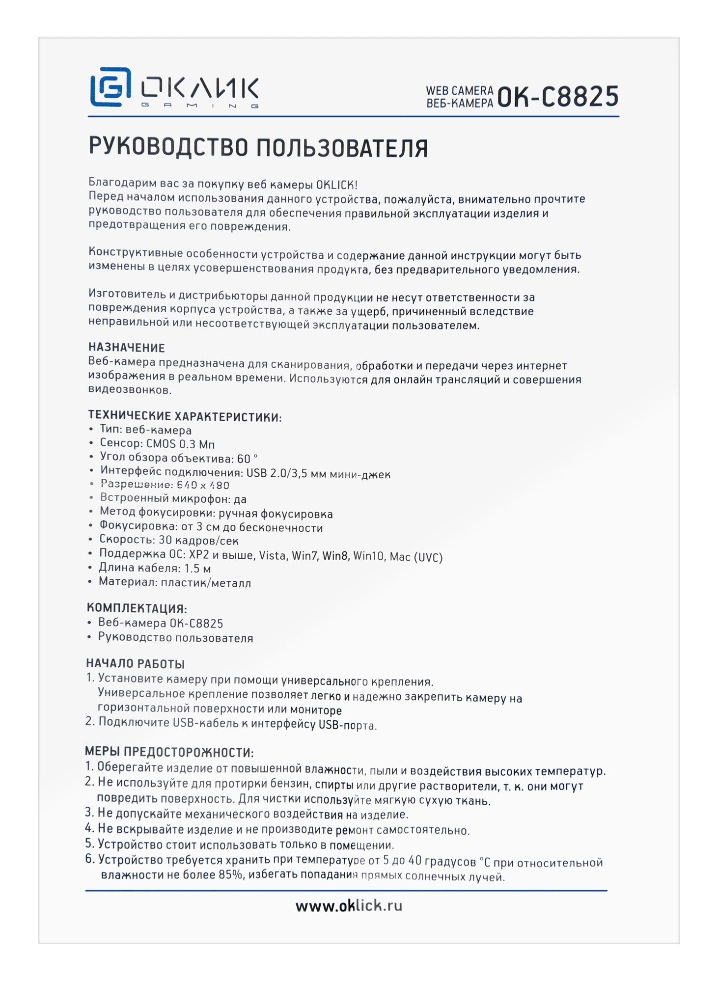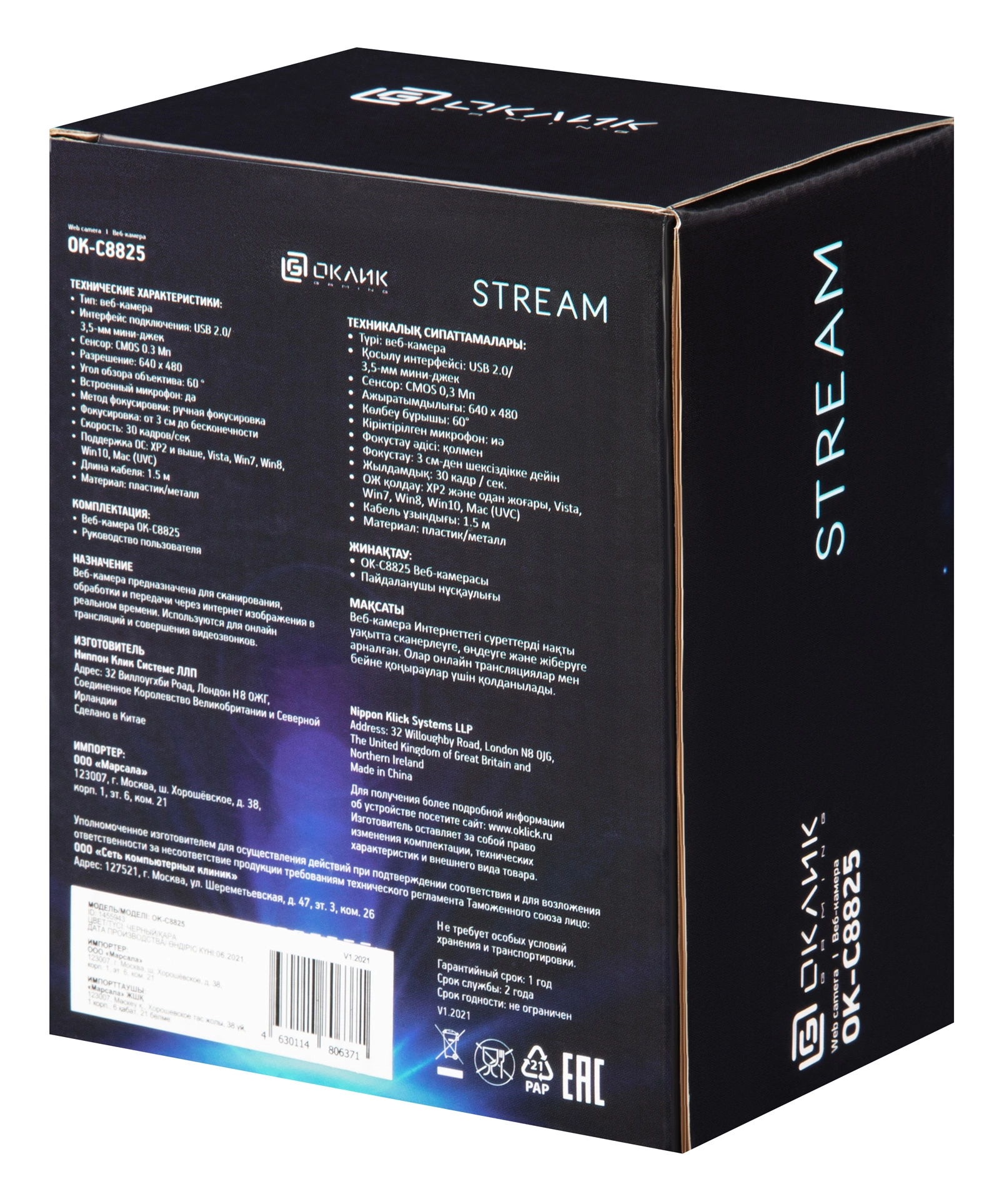 Камера Web Оклик OK-C8825 черный 0.3Mpix (640x480) USB2.0 с микрофоном