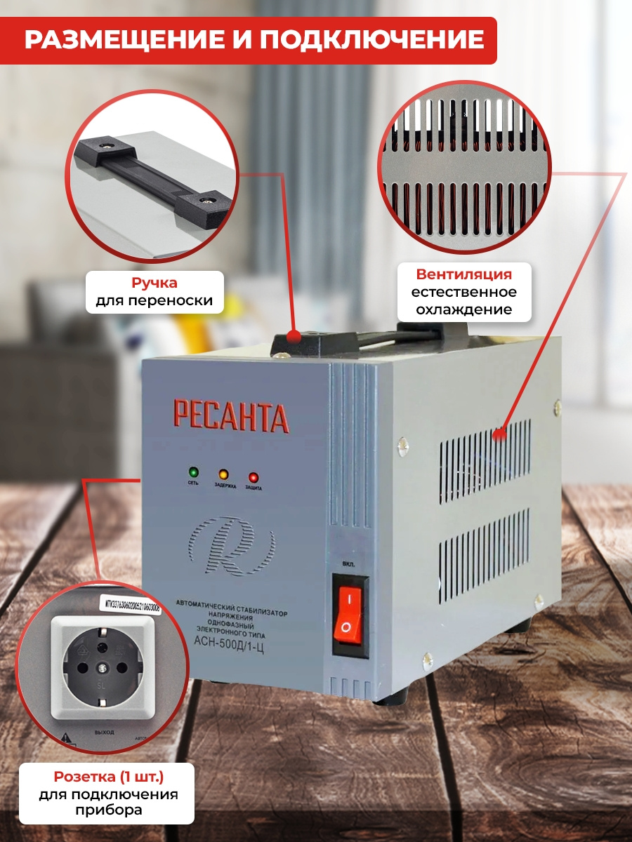 Стабилизатор напряжения Ресанта АСН-500Д/1-Ц 0.5кВА однофазный серый (63/6/37)