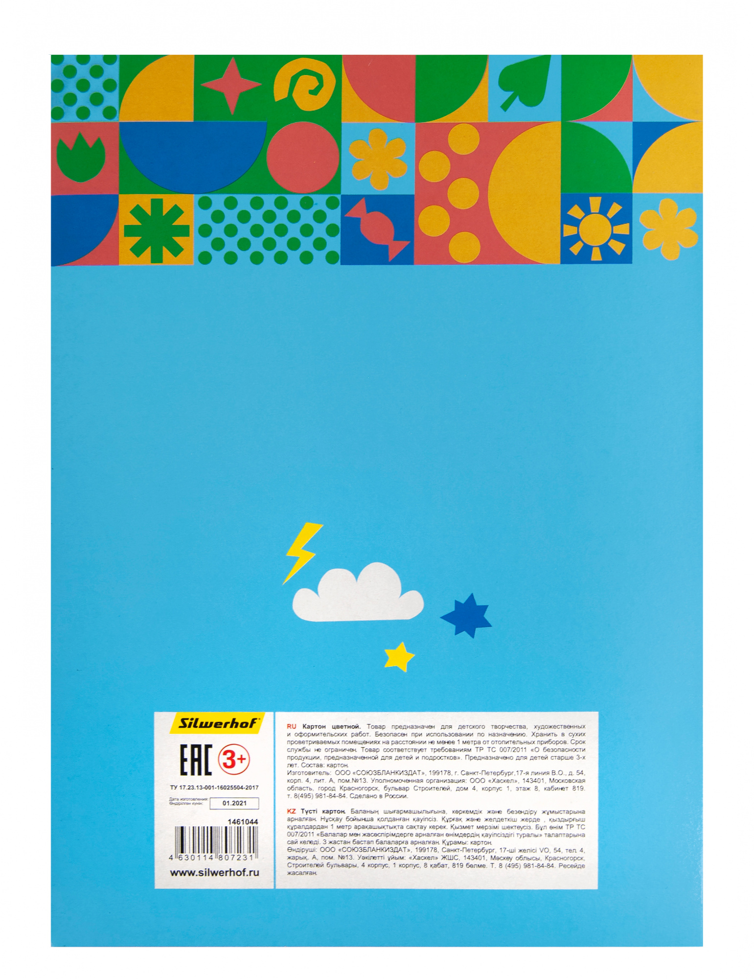 Картон цветной Silwerhof ассорти одност. 8л. 8цв. A4 Супер агенты 230г/м2 1диз. обл.мел.картон папка (упак.:25шт)