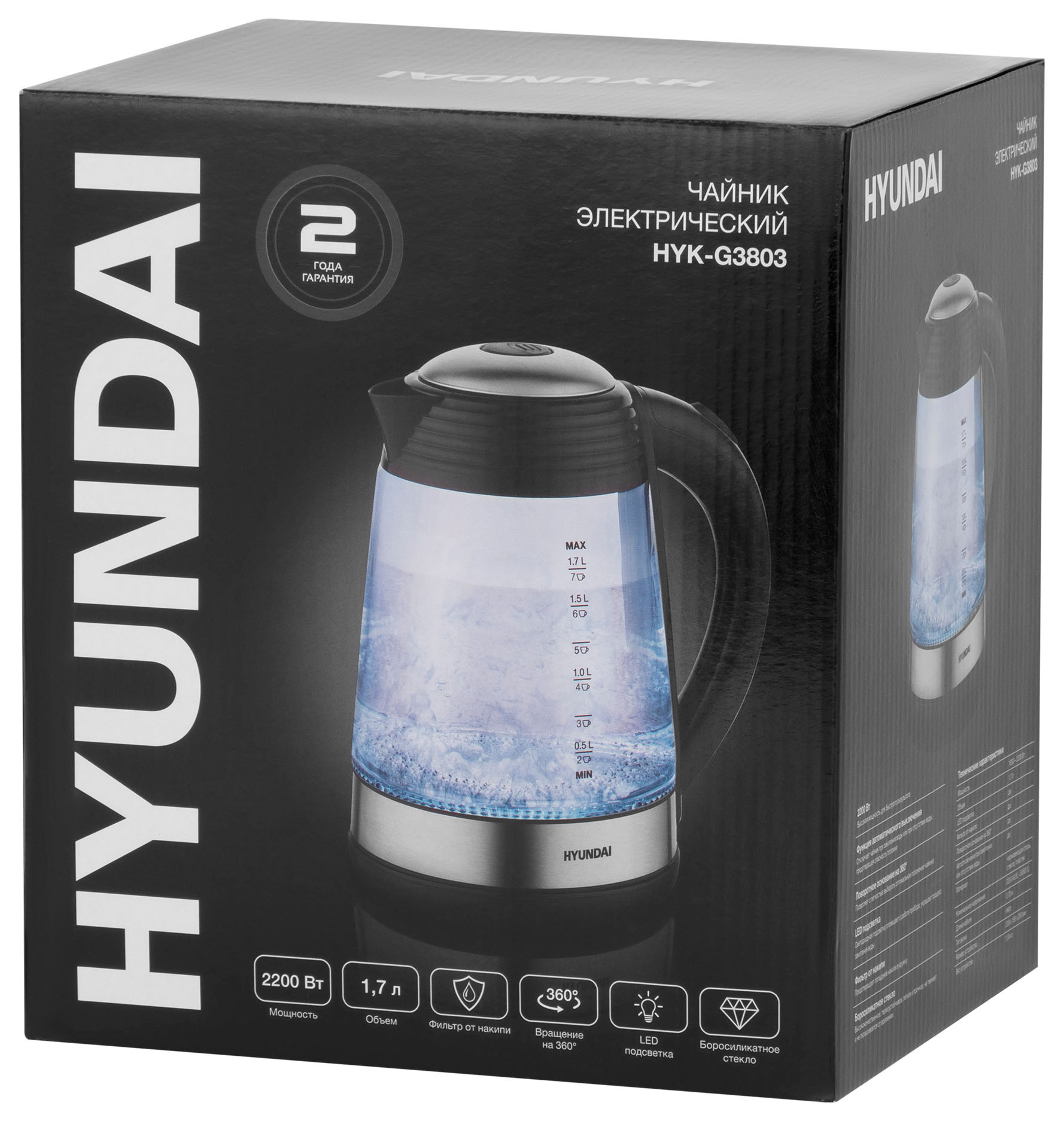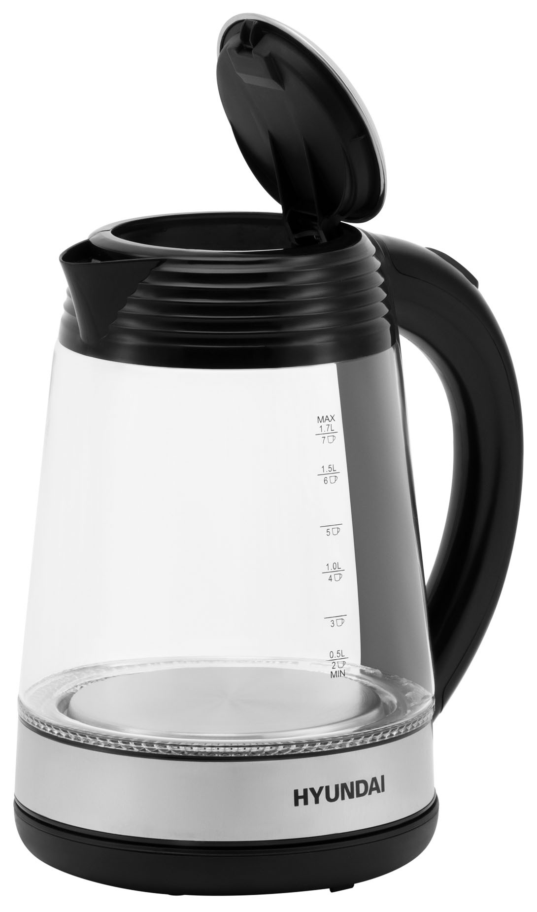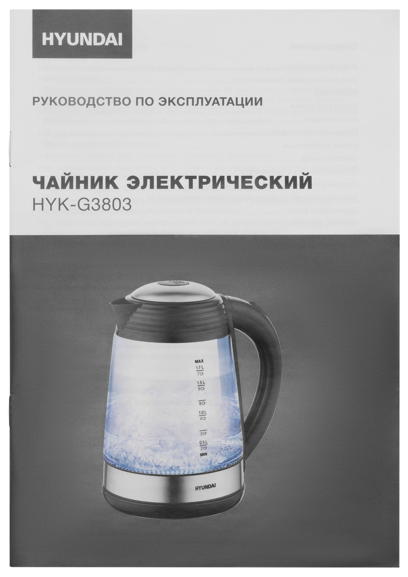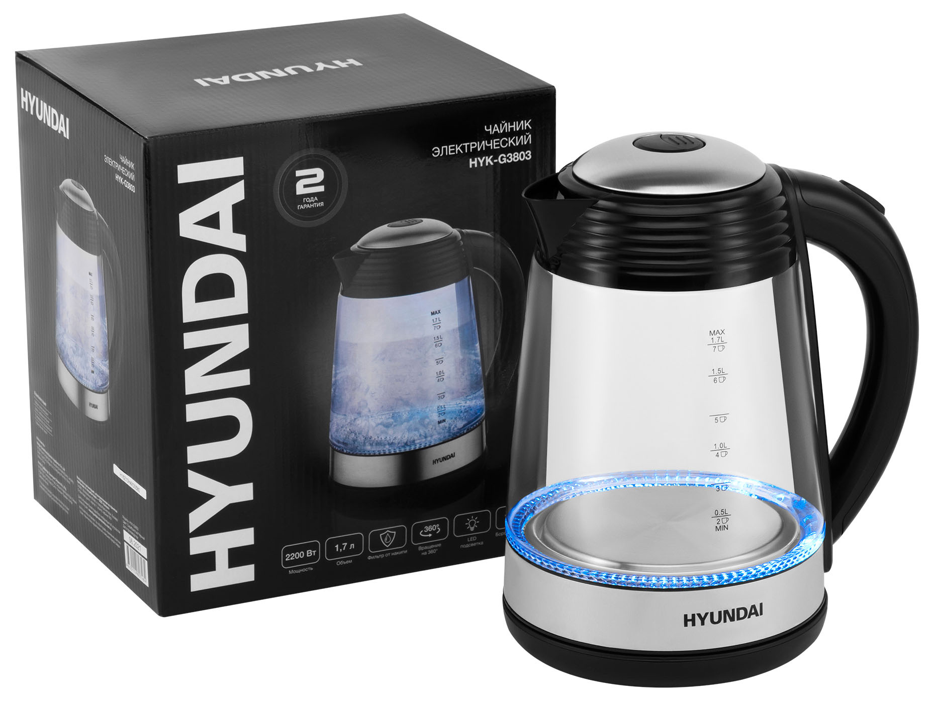 Чайник электрический Hyundai HYK-G3803 1.7л. 2200Вт черный/серебристый корпус: стекло