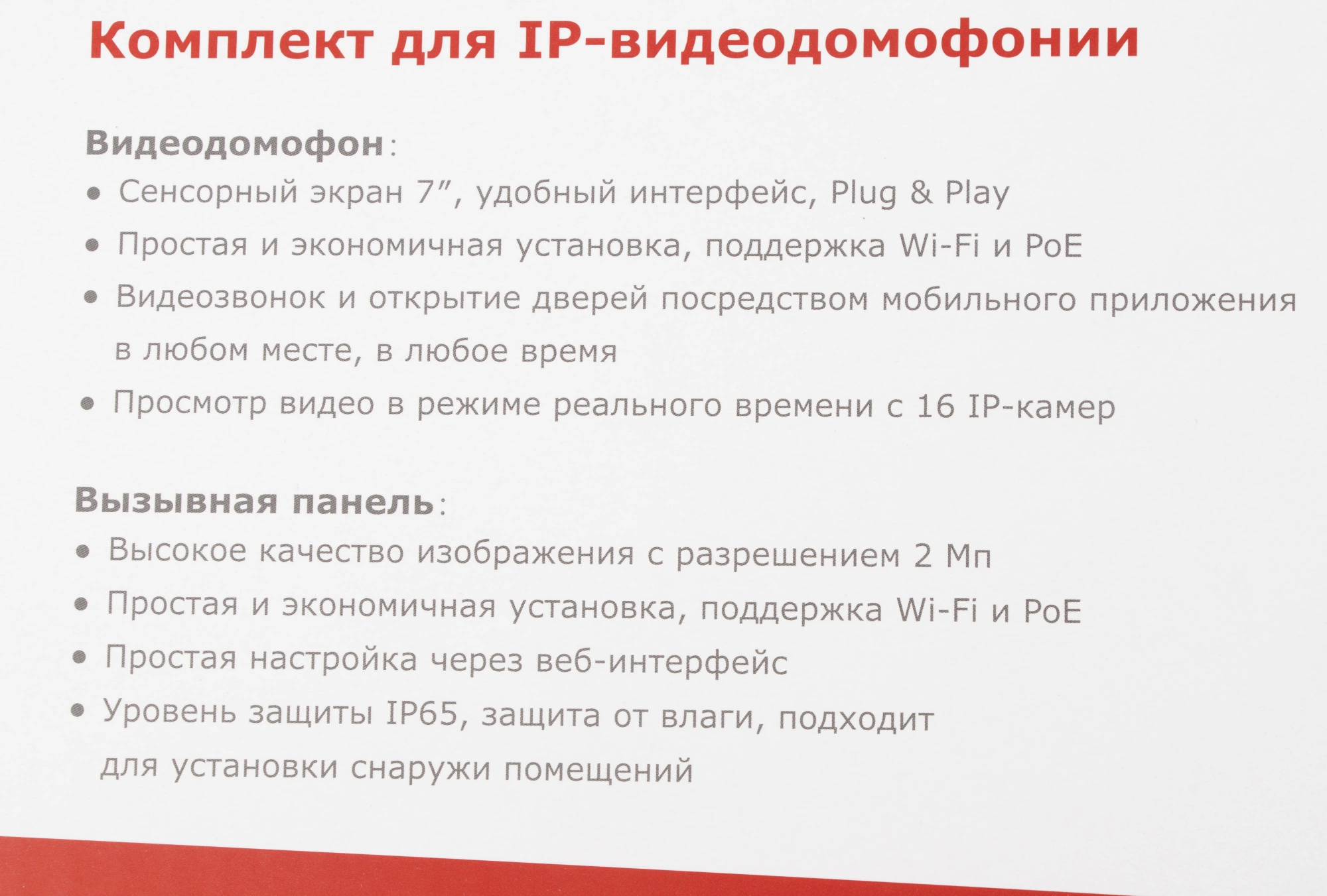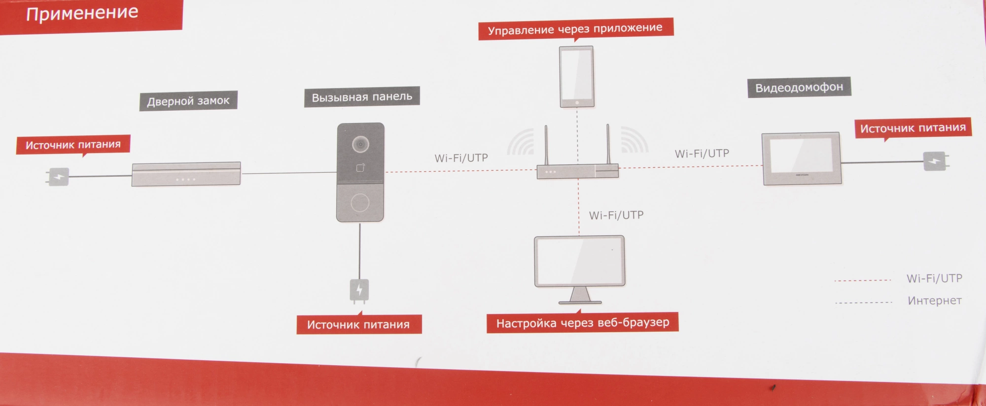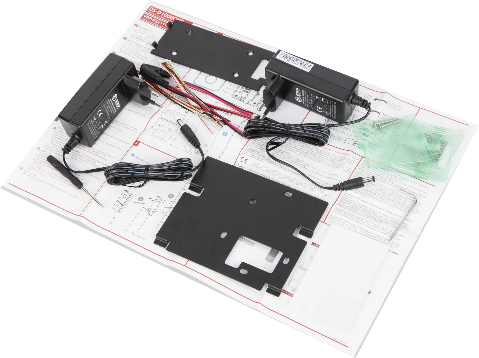 - Дополнительно в комплекте1 Wi-Fi вызывная панель DS-D100IPF 1 Wi-Fi видеомонитор DS-D100IMWF 2 блока питания DC 12 В