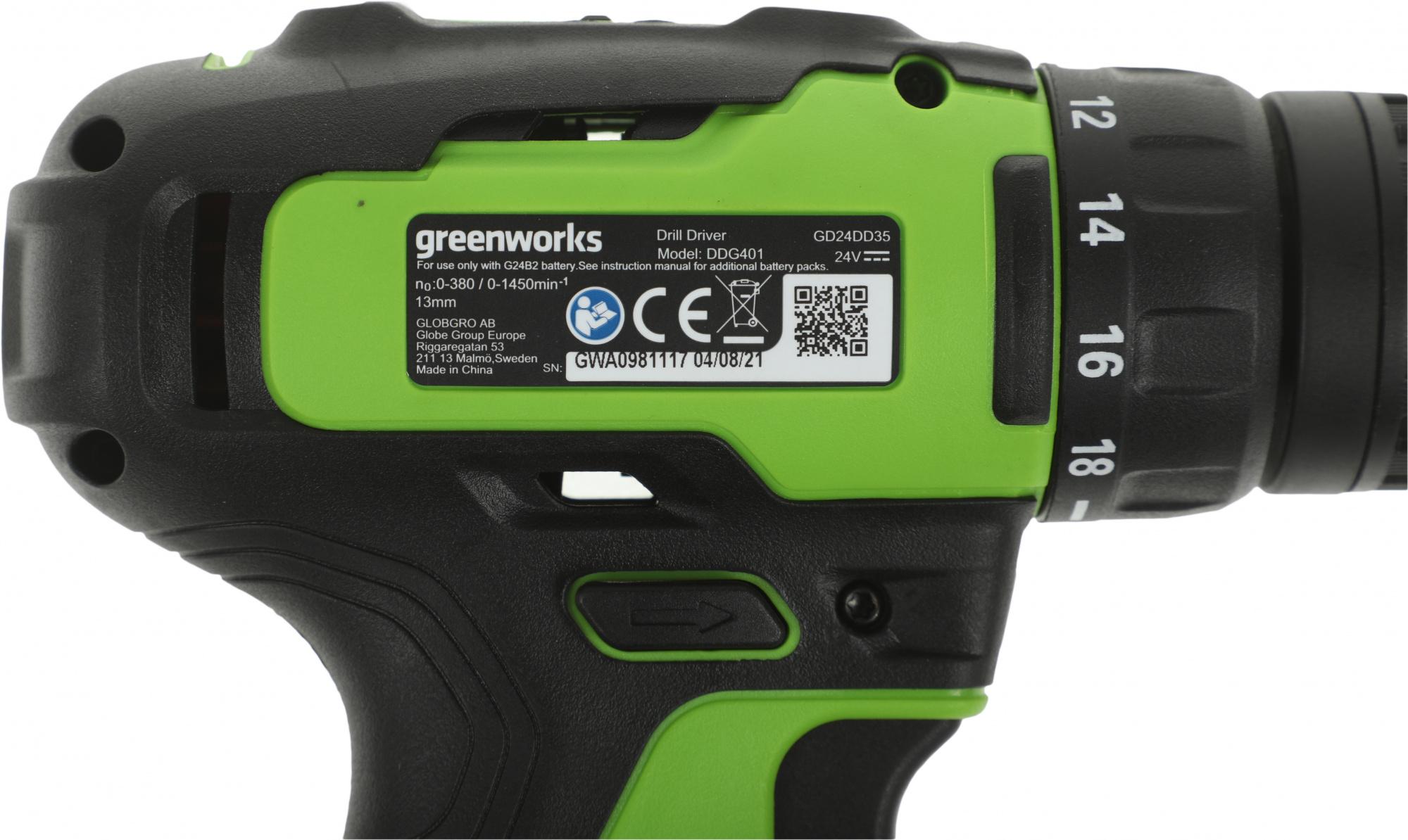 Дрель-шуруповерт Greenworks GD24DD35 аккум. патрон:быстрозажимной (3704007)