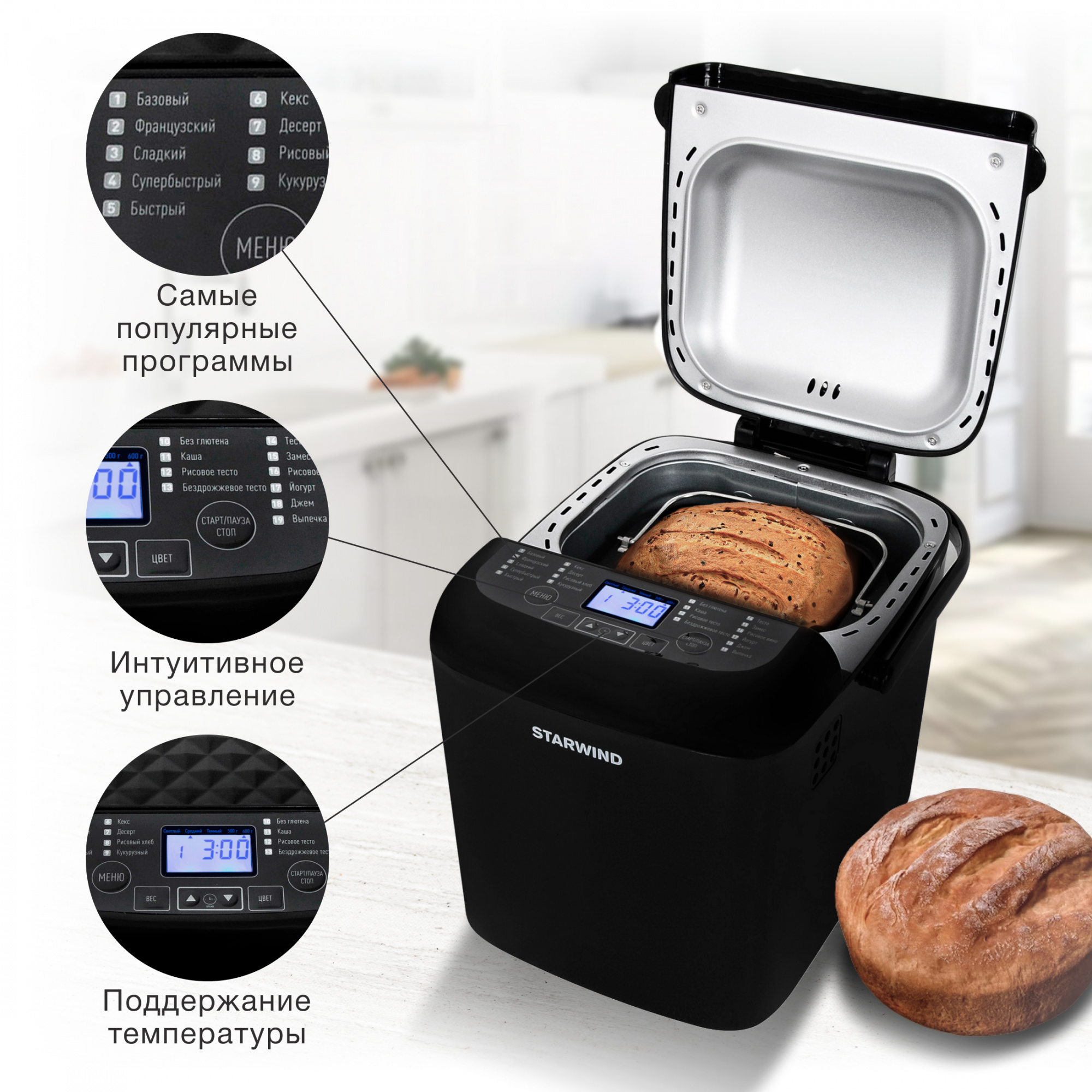 Хлебопечь Starwind SBM1083 500Вт черный