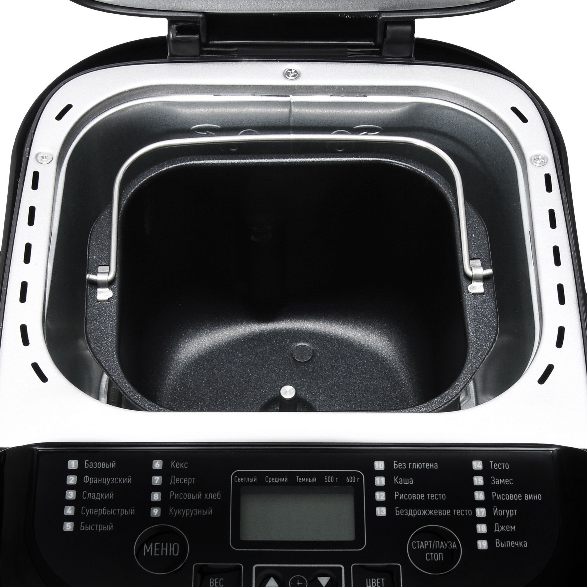 - Функциивыбор цвета корочки, поддержание температуры, регулировка веса выпечки, таймер отсрочки старта