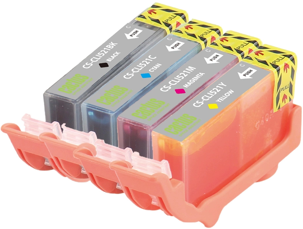Картридж струйный Cactus CS-CLI521BK/M/C/Y черный/голубой/желтый/пурпурный набор (33.6мл) для Canon Pixma iP3600/iP4600/iP4700/MP540/MP550/MP560/MP620/MP630/MP640/MP980/MP990/MX860/MX870 с чипом