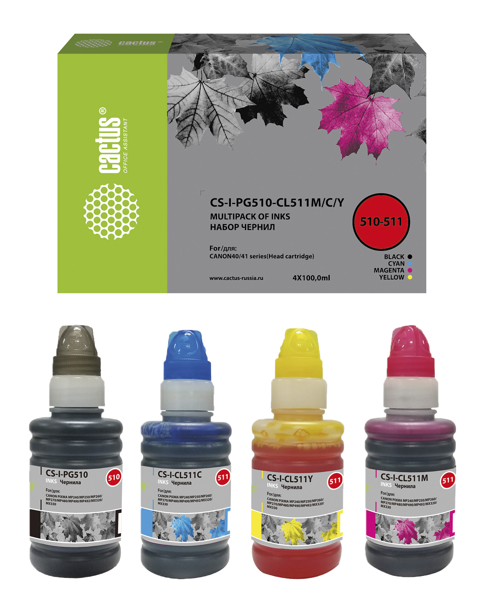 Чернила Cactus CS-I-PG510-CL511M/C/Y многоцветный набор 4x100мл для Canon Pixma MP240/MP250/MP260/MP270