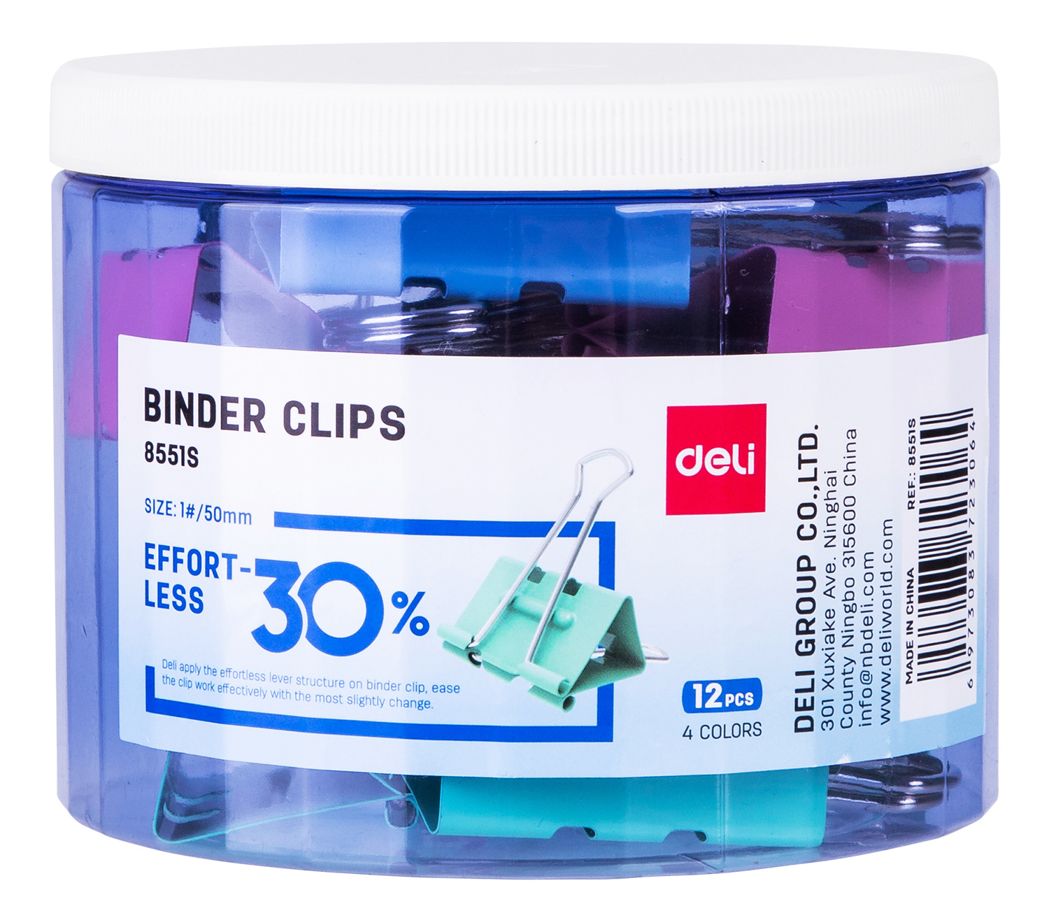 Зажимы Deli E8553S металл 32мм ассорти (упак.:24шт) пластиковая туба