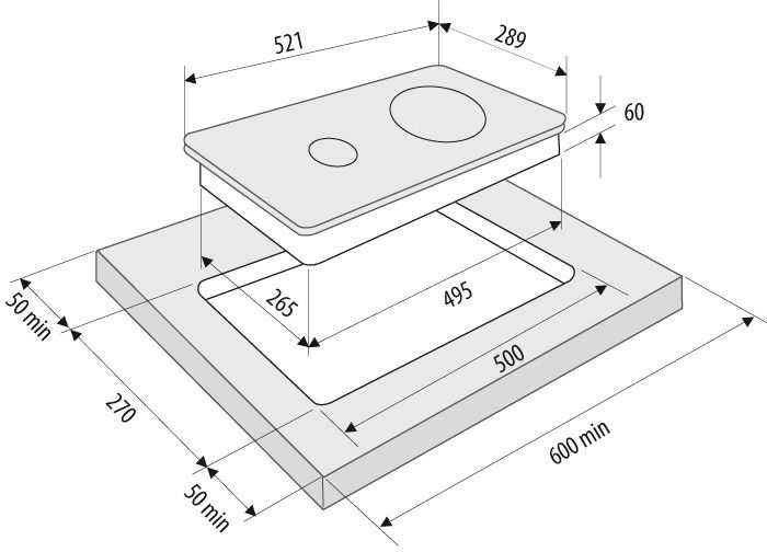 - Размеры для встраивания270x500мм