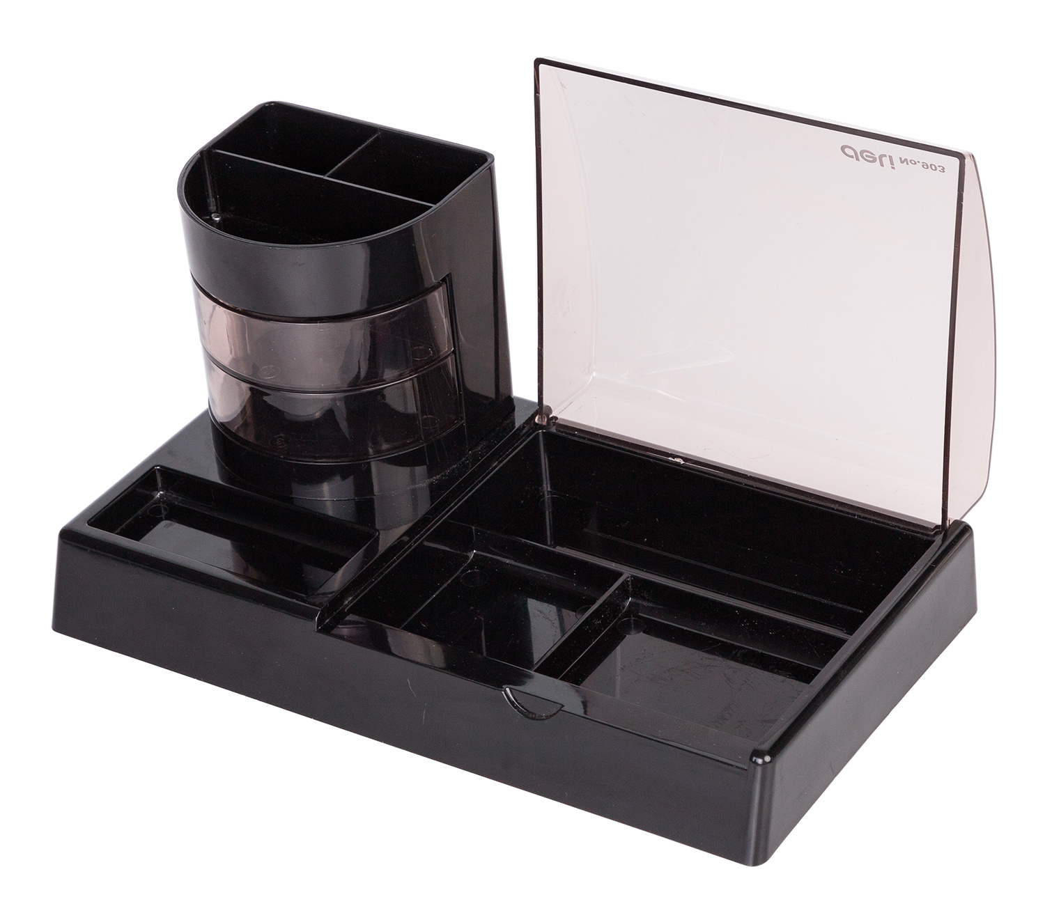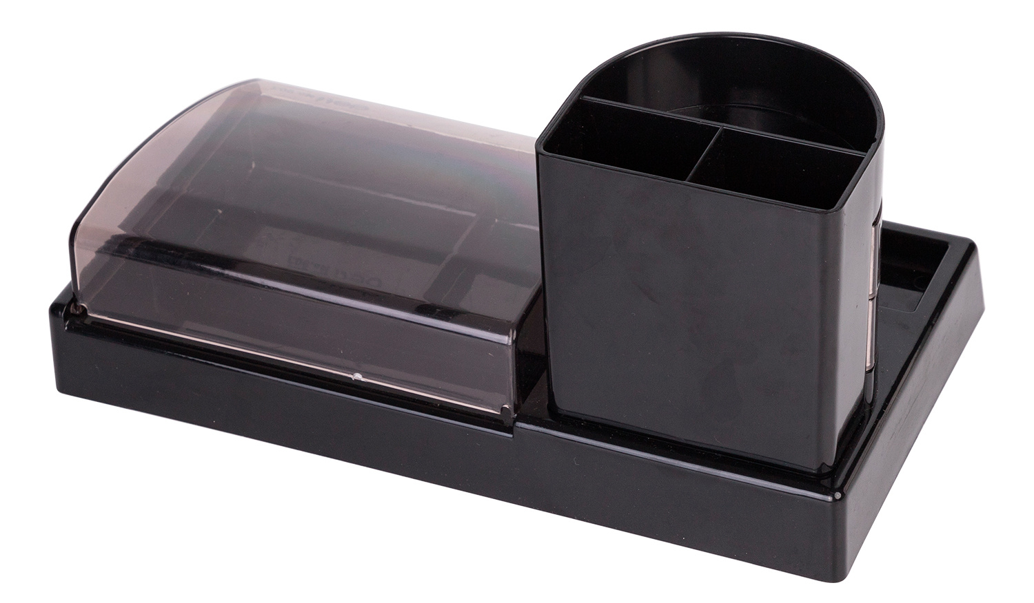 - Состав набораПодставка для пишущих предметов с выдвижными отделами для мелкоофисных принадлежностей, линейка, ножницы, нож канцелярский, степлер, клейкая лента, скобы, ручка, два карандаша, скрепка, ластик, точилка, клейкие листочки, зажимы для бумаг, гвоздики, точилка.
